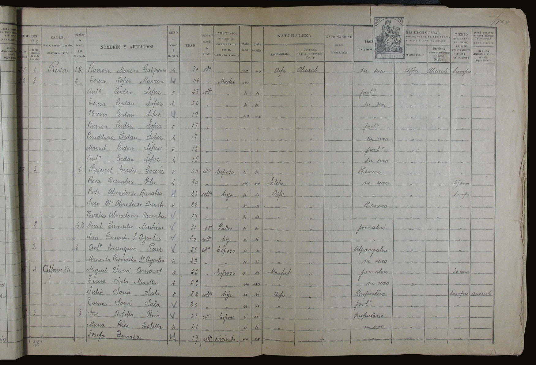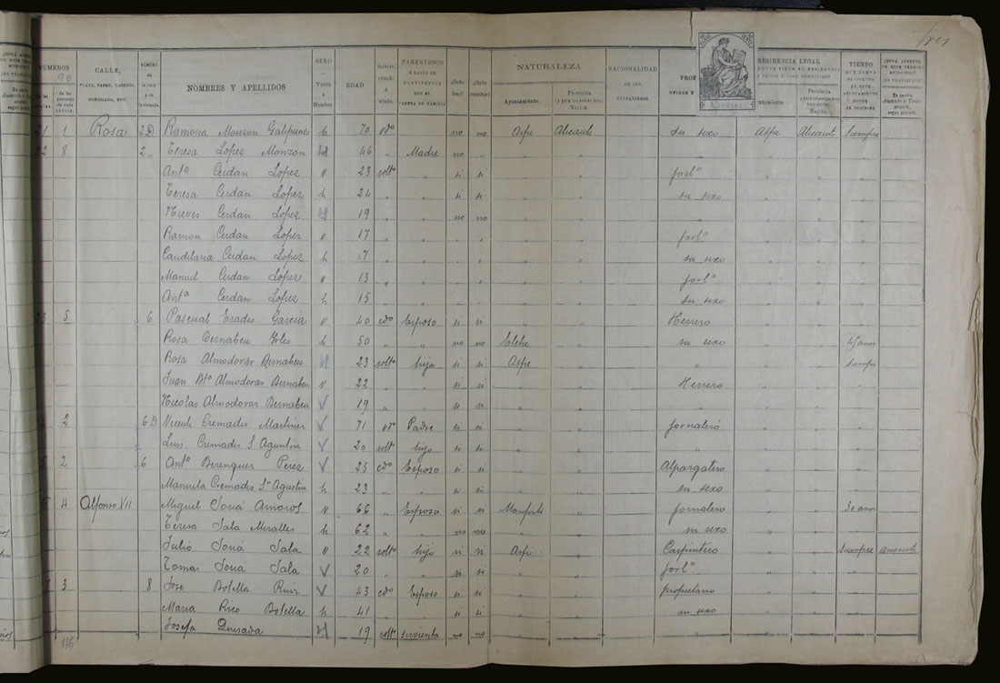 Padrón de habitantes, 1900