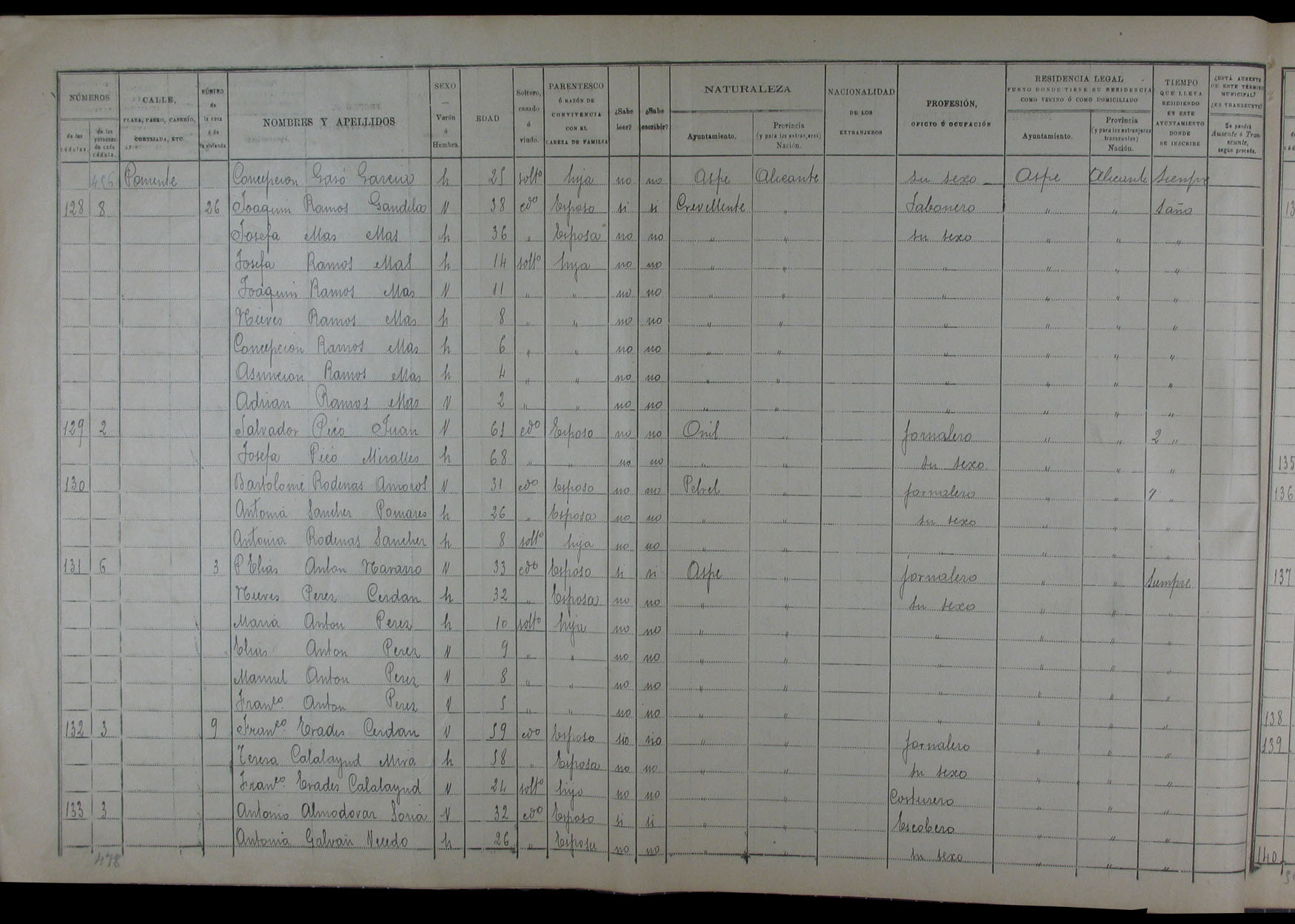 Padrón de habitantes, 1900