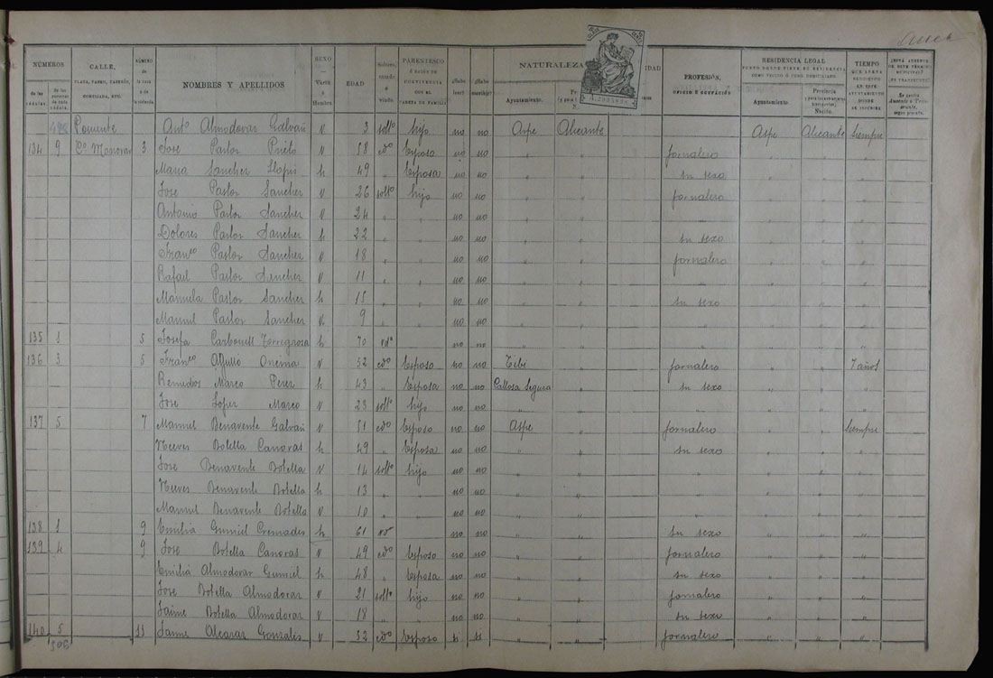 Padrón de habitantes, 1900