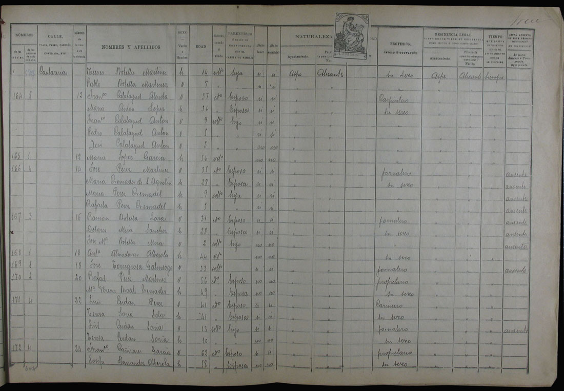 Padrón de habitantes, 1900