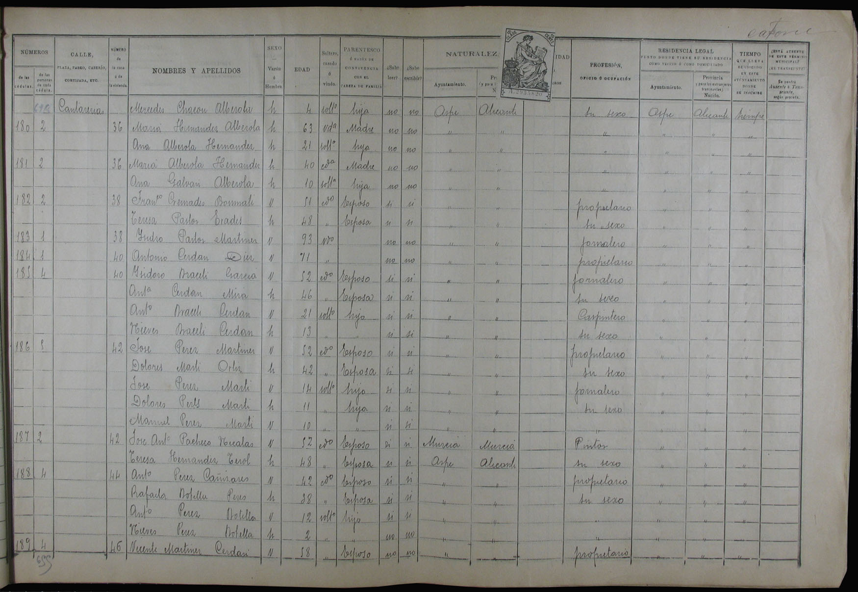 Padrón de habitantes, 1900