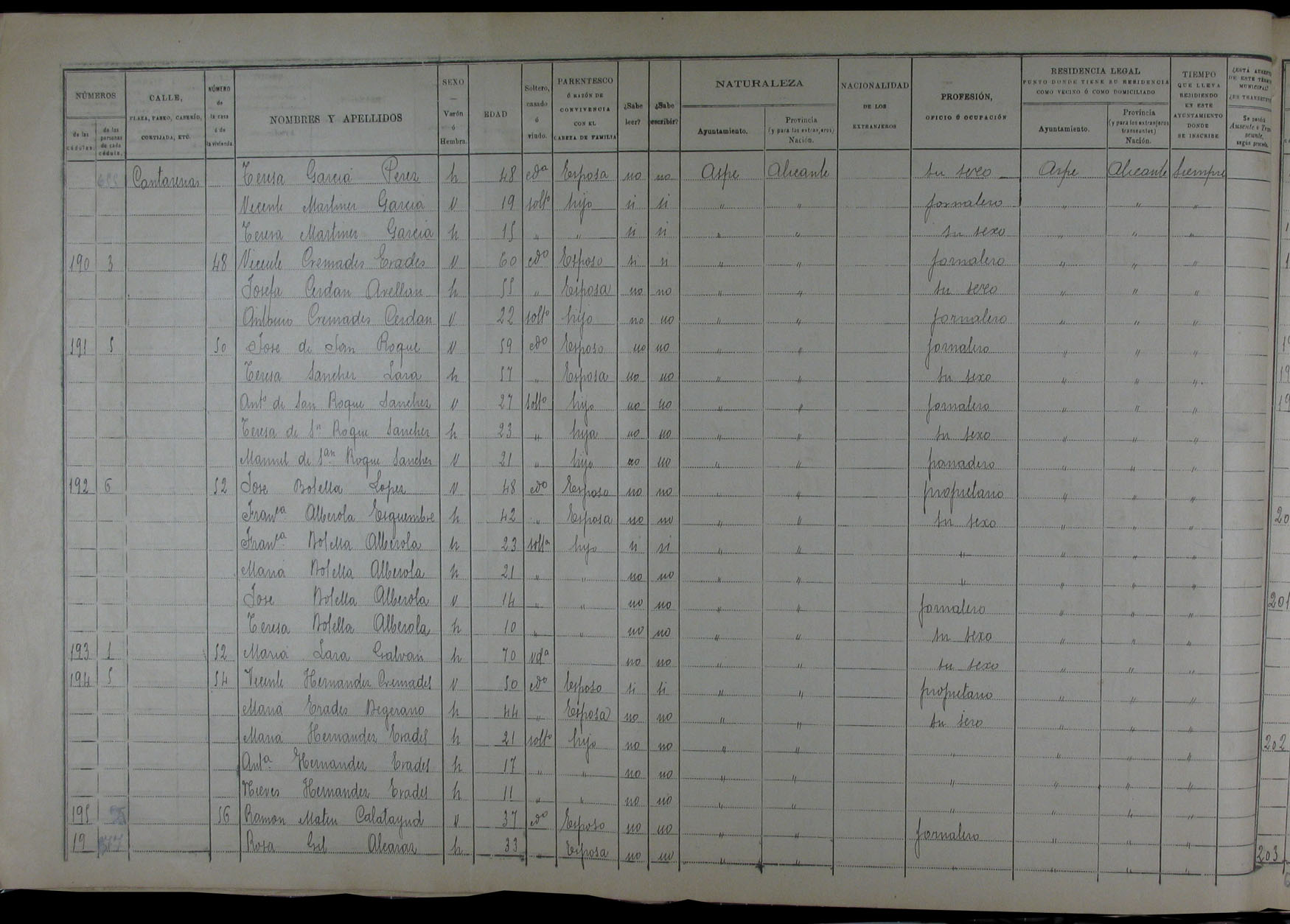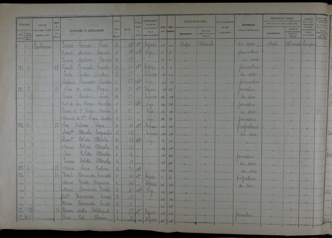 Padrón de habitantes, 1900