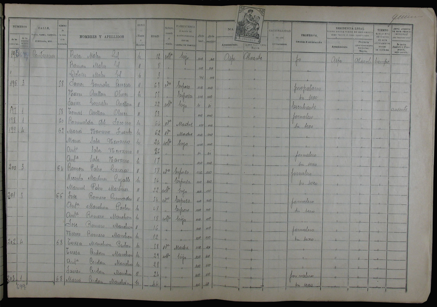 Padrón de habitantes, 1900