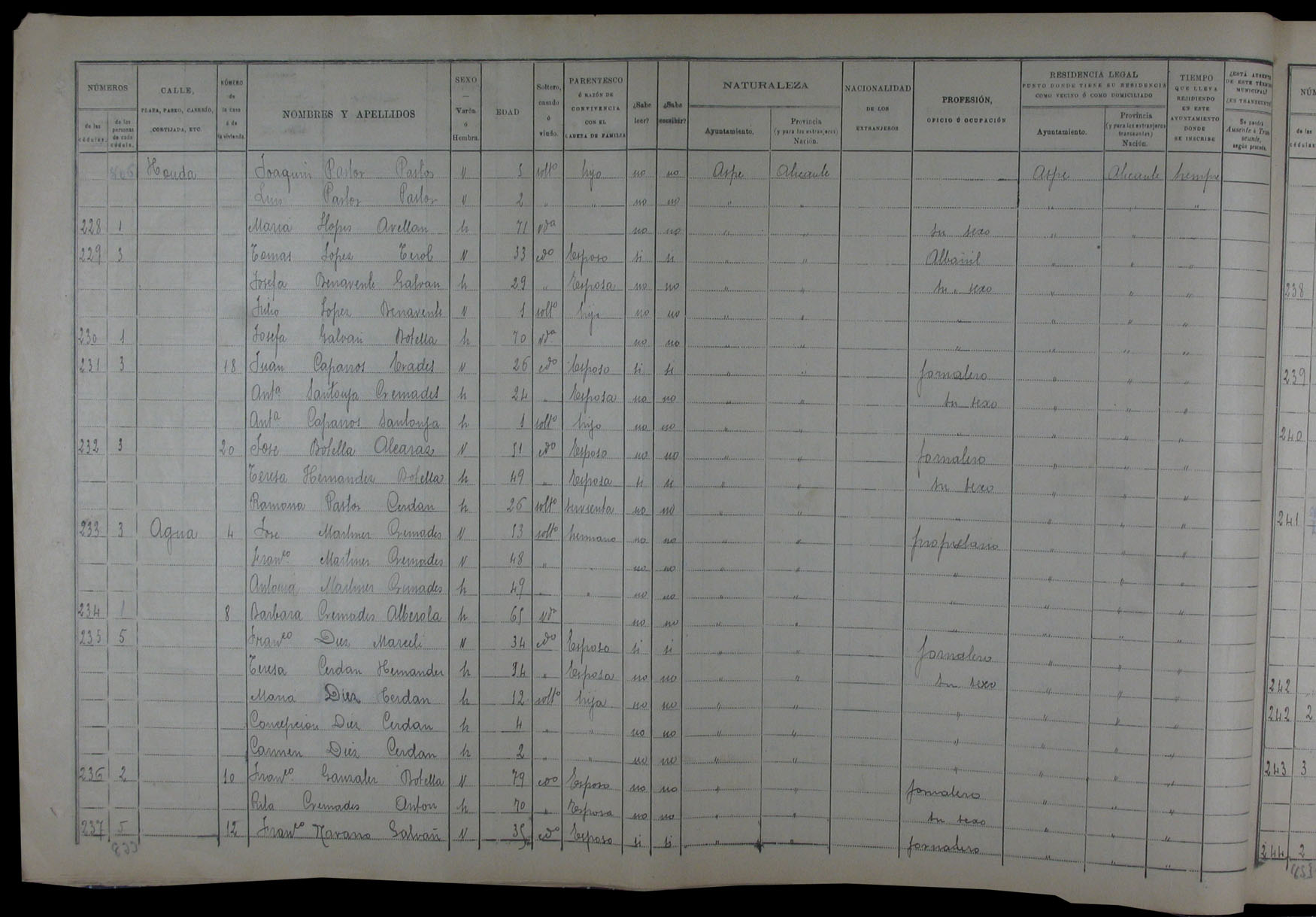 Padrón de habitantes, 1900