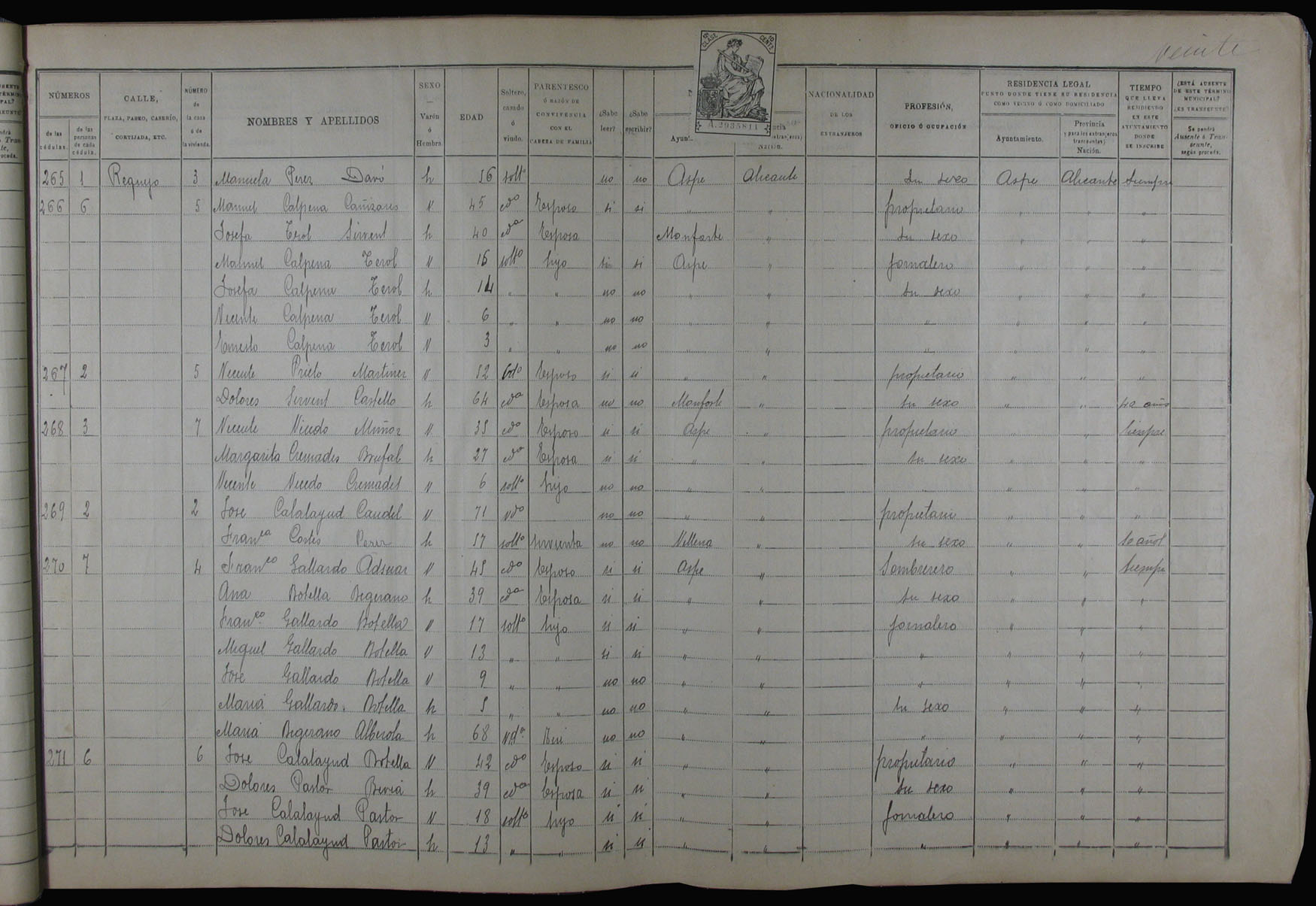 Padrón de habitantes, 1900