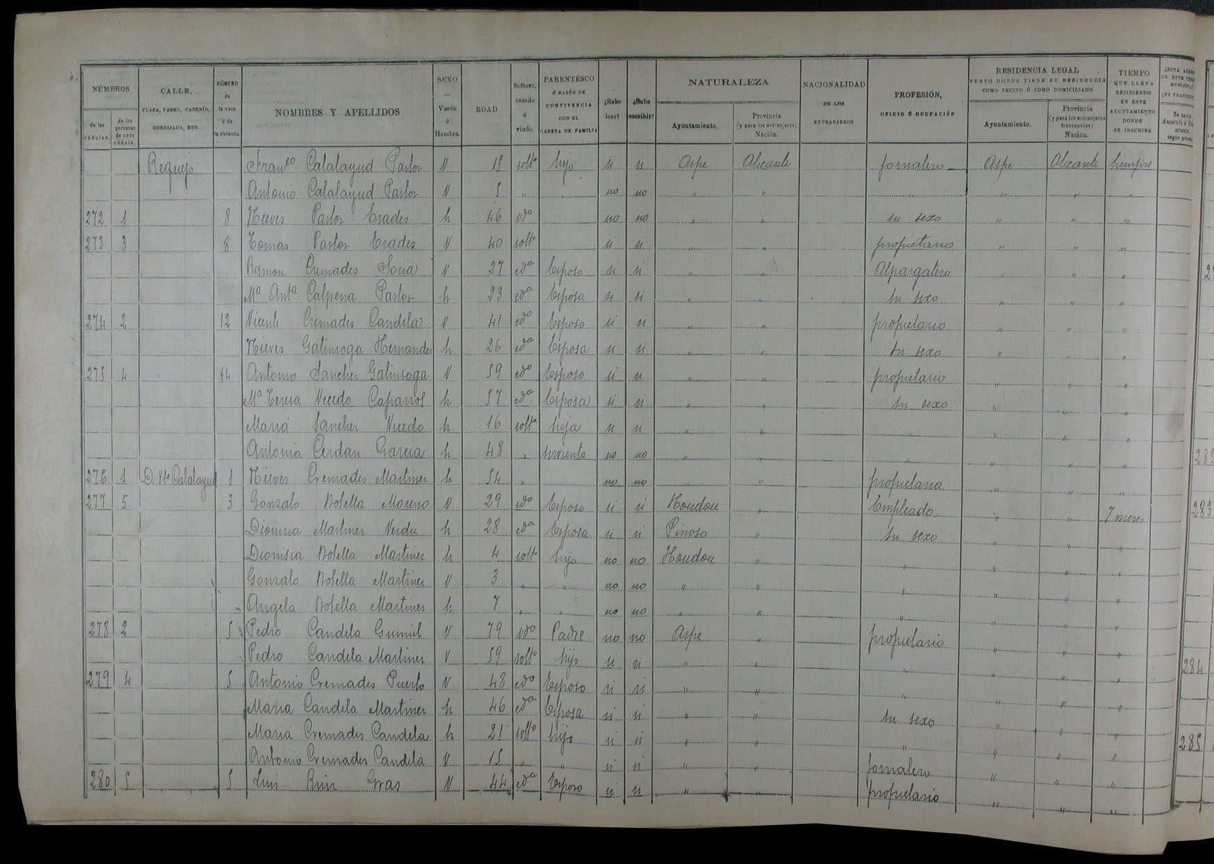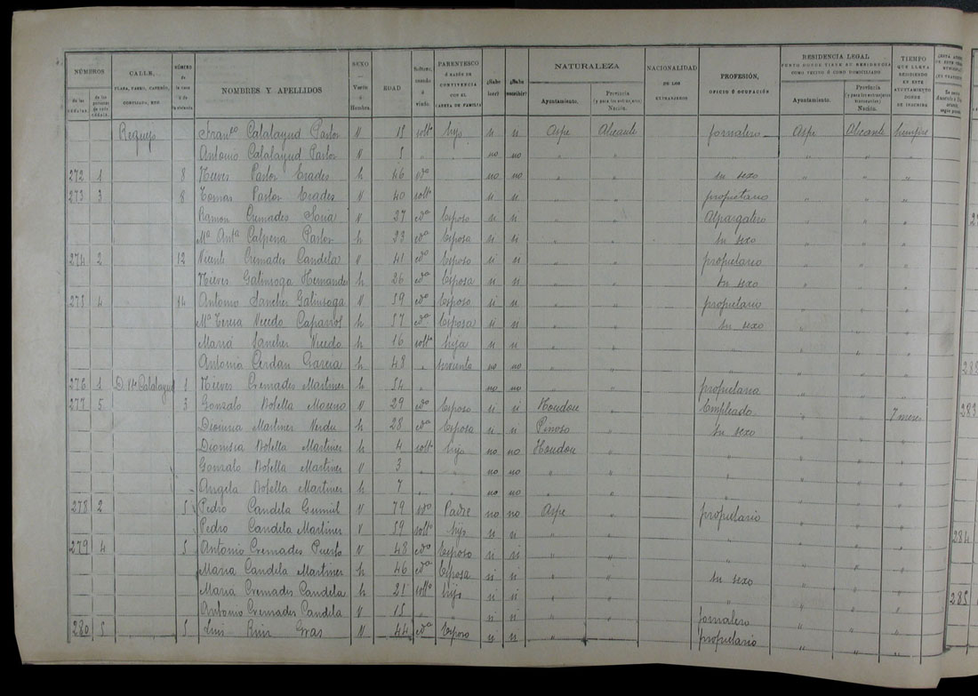 Padrón de habitantes, 1900