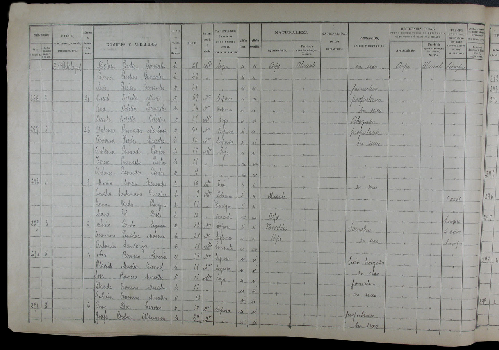 Padrón de habitantes, 1900