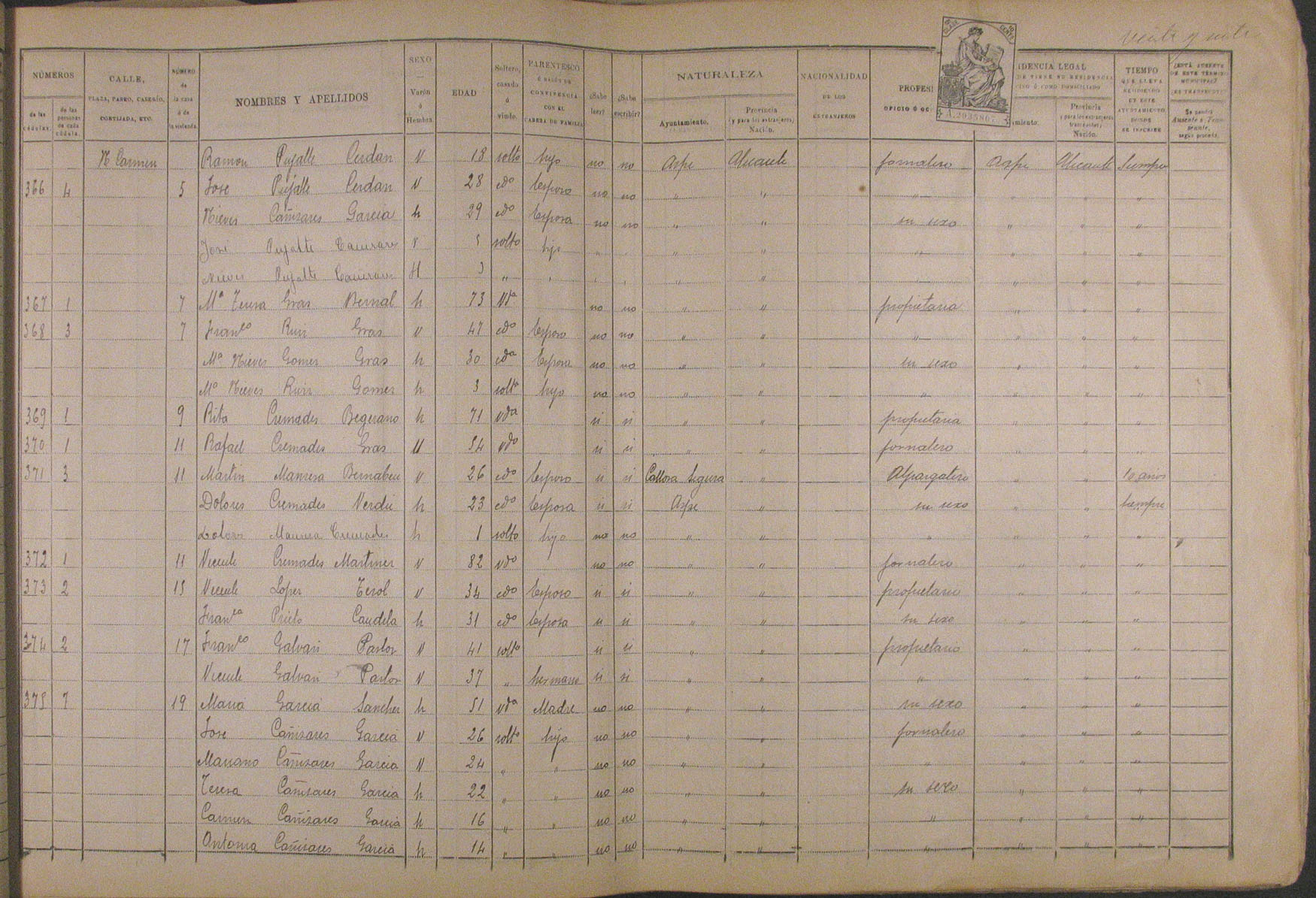 Padrón de habitantes, 1900