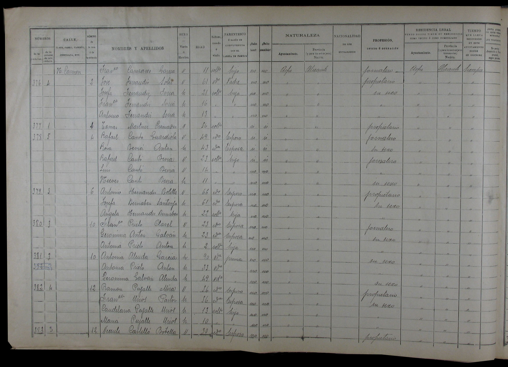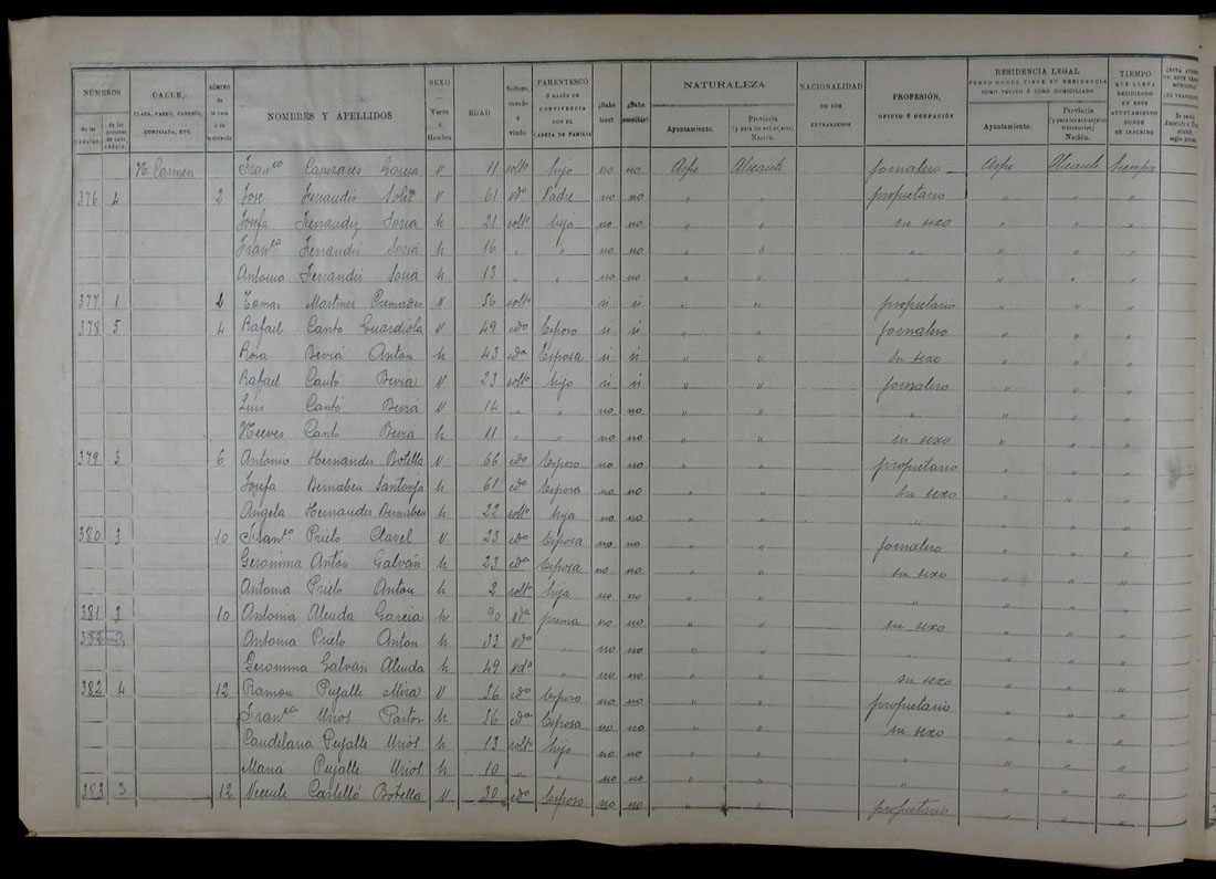 Padrón de habitantes, 1900