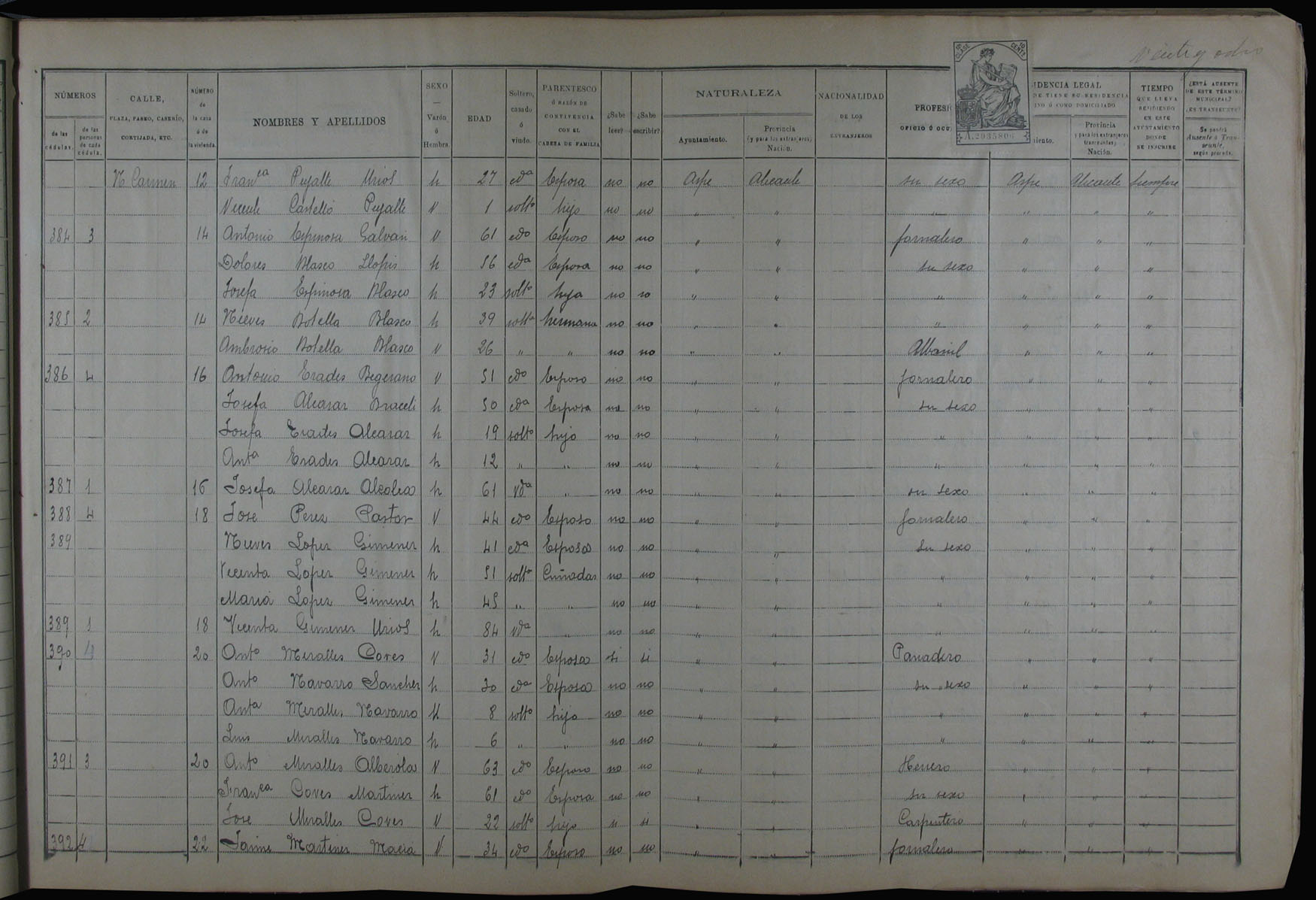 Padrón de habitantes, 1900