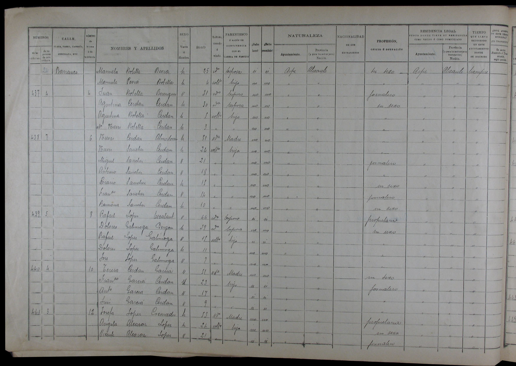 Padrón de habitantes, 1900
