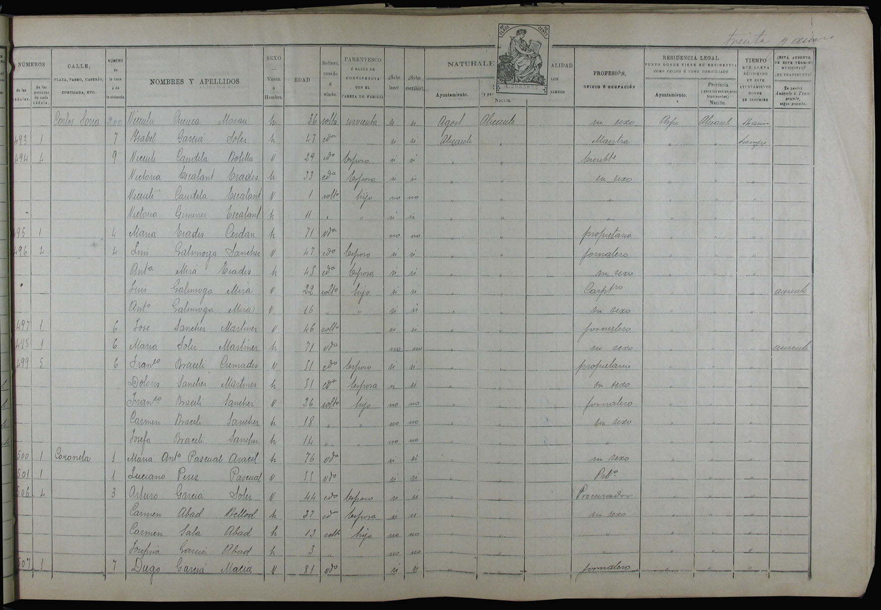 Padrón de habitantes, 1900