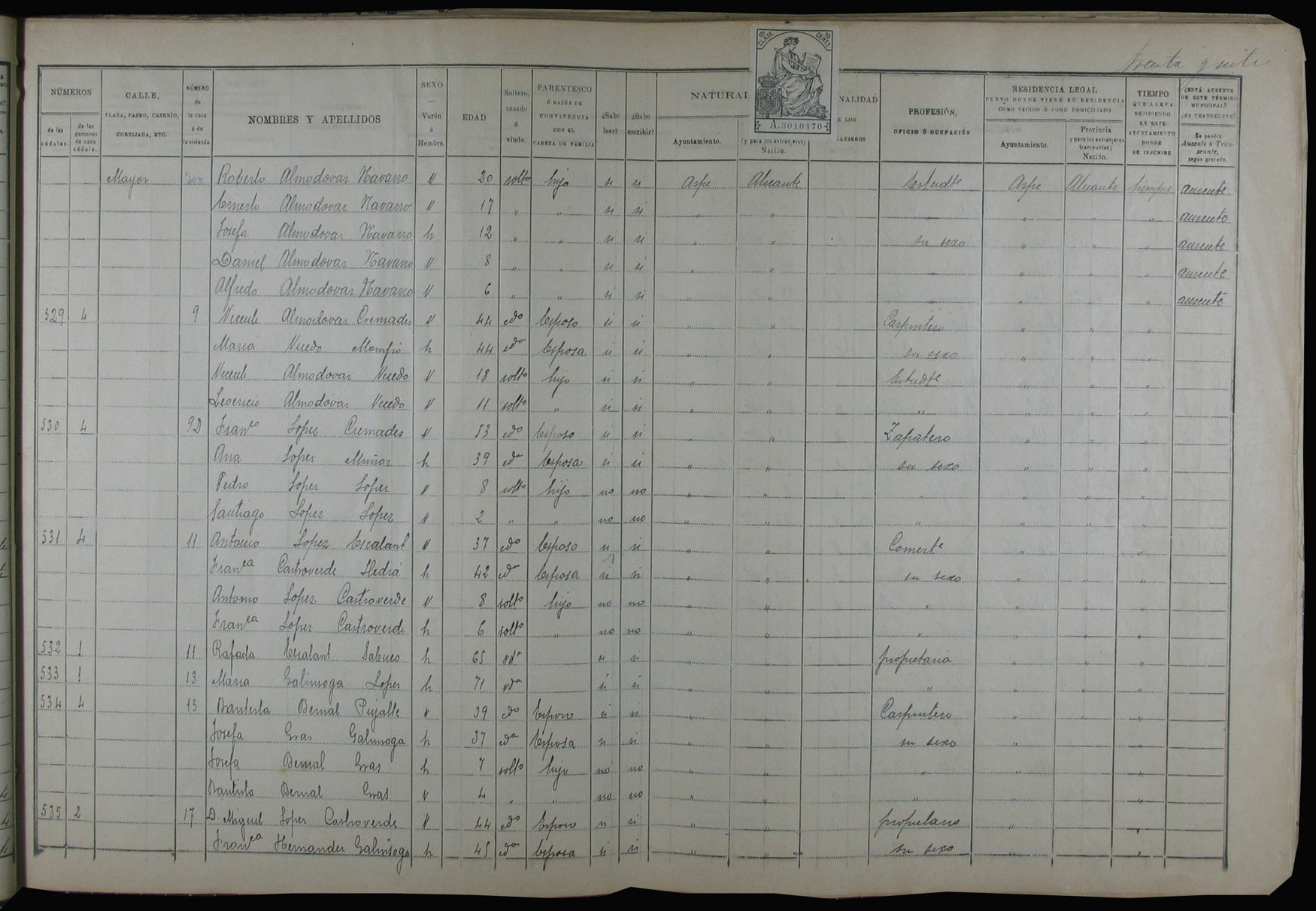 Padrón de habitantes, 1900