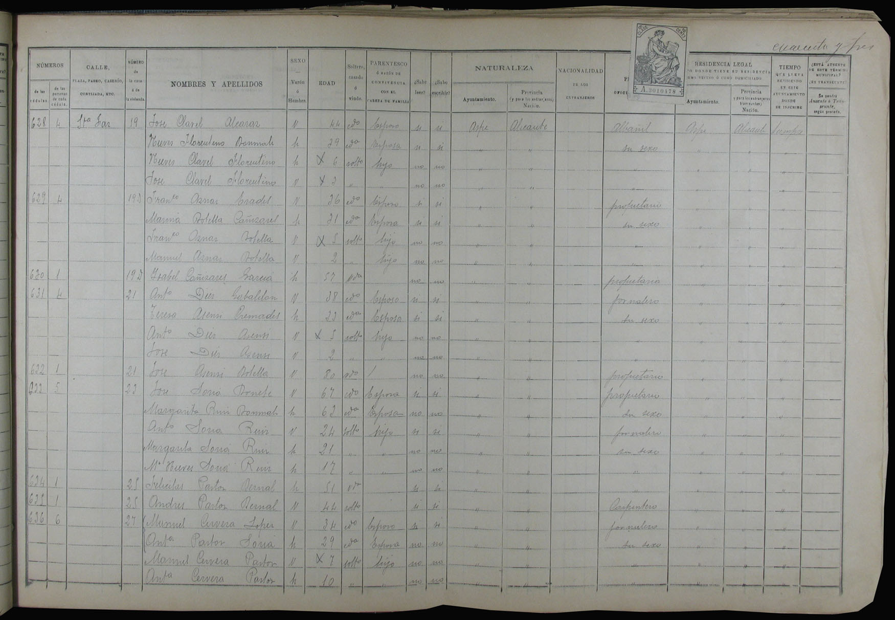 Padrón de habitantes, 1900