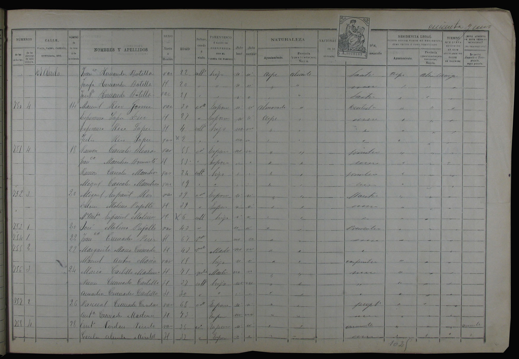 Padrón de habitantes, 1900