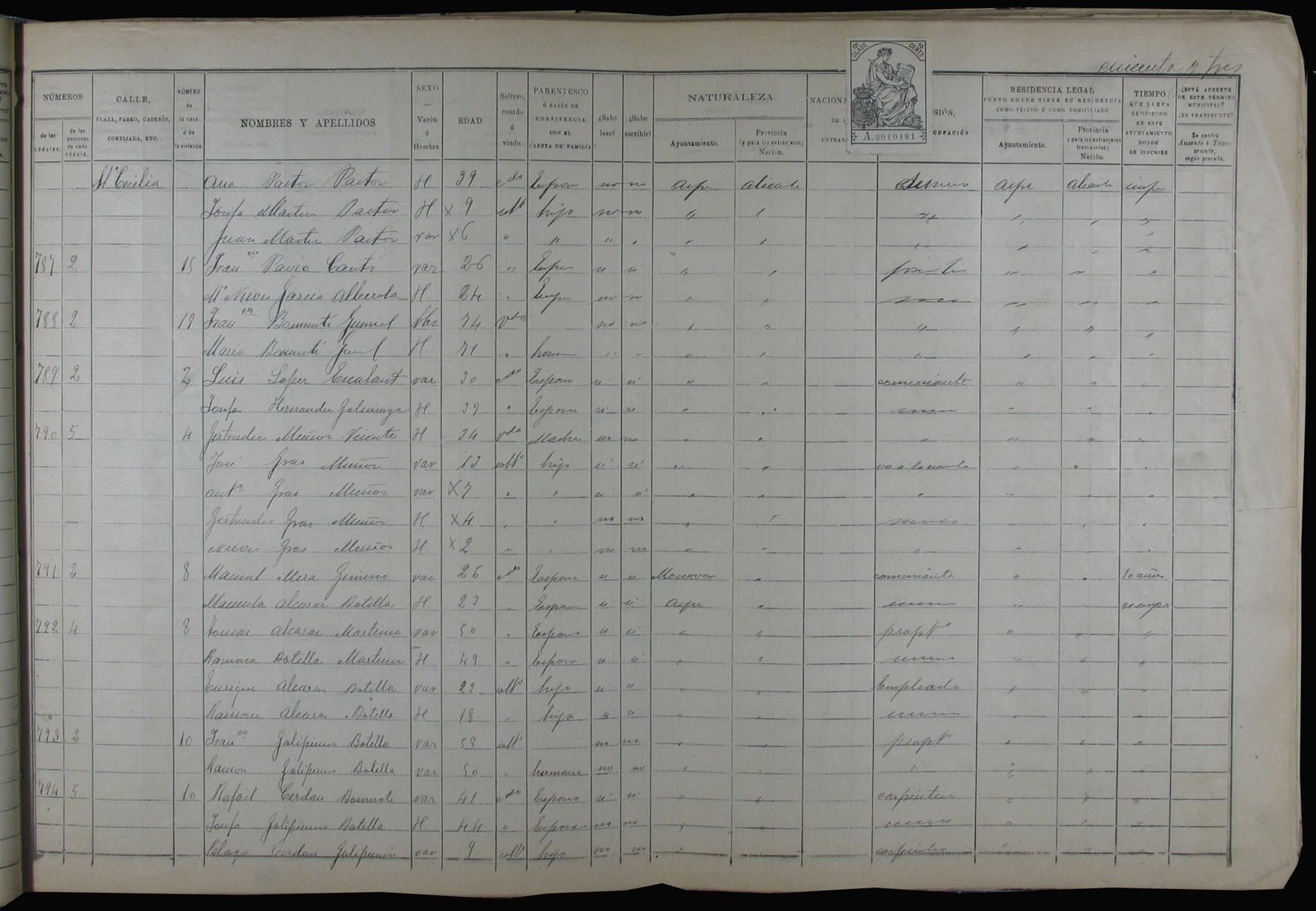 Padrón de habitantes, 1900