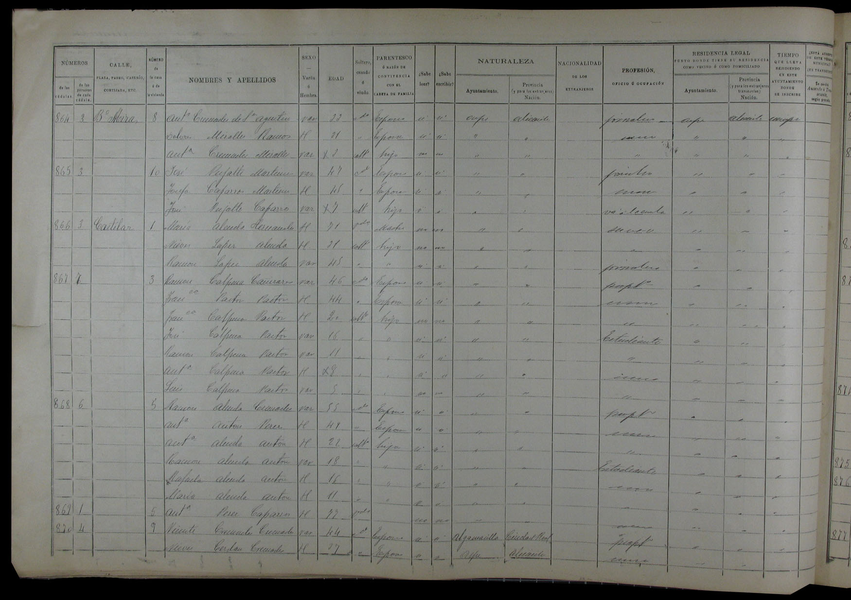 Padrón de habitantes, 1900