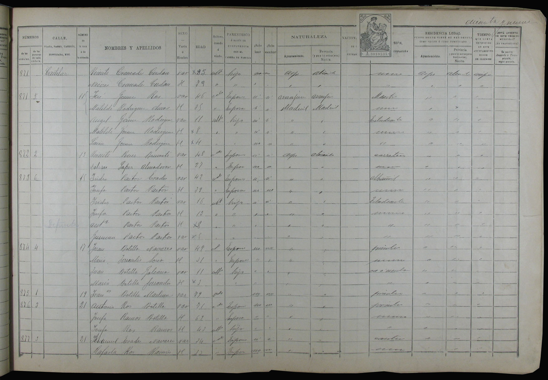 Padrón de habitantes, 1900