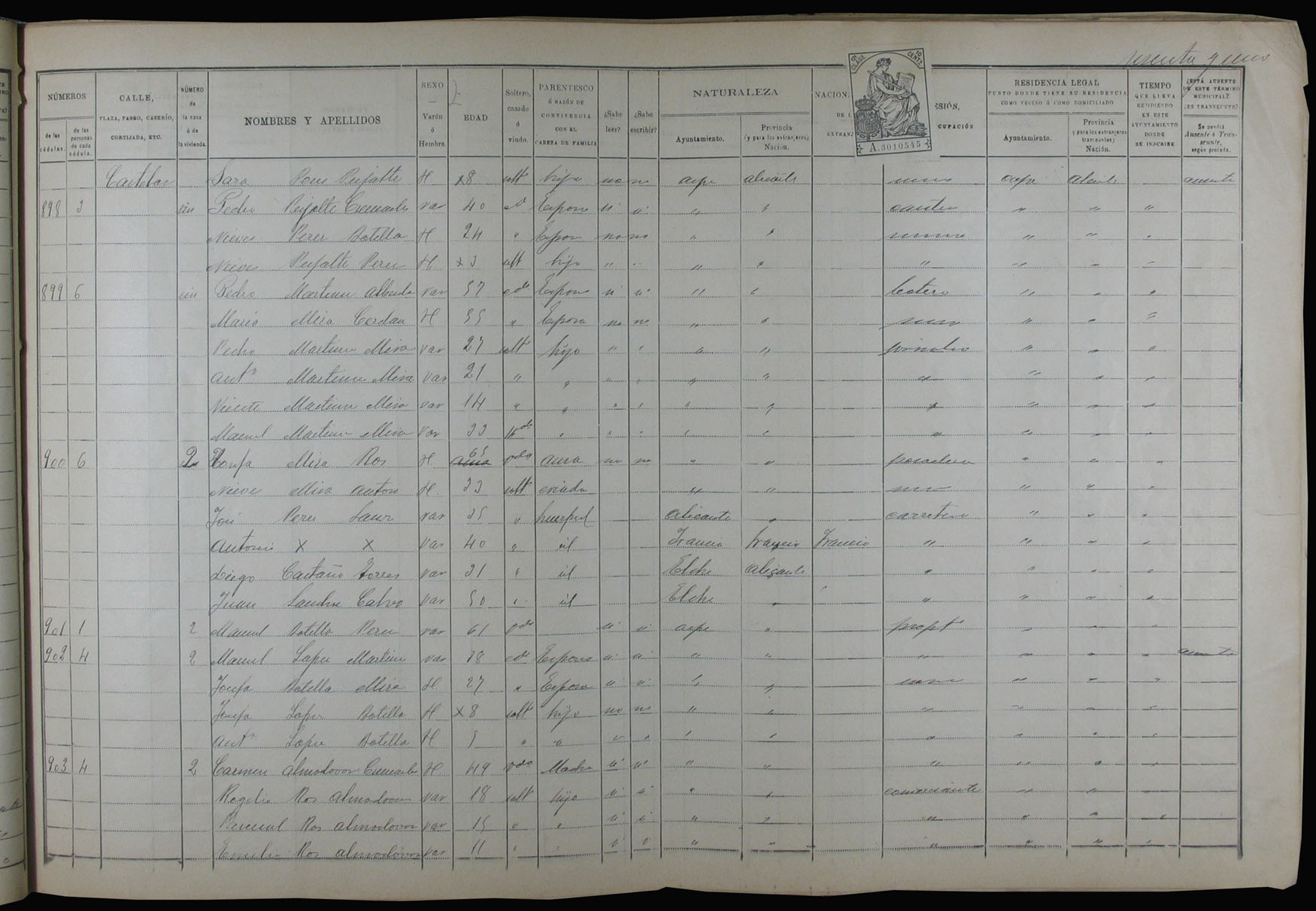 Padrón de habitantes, 1900