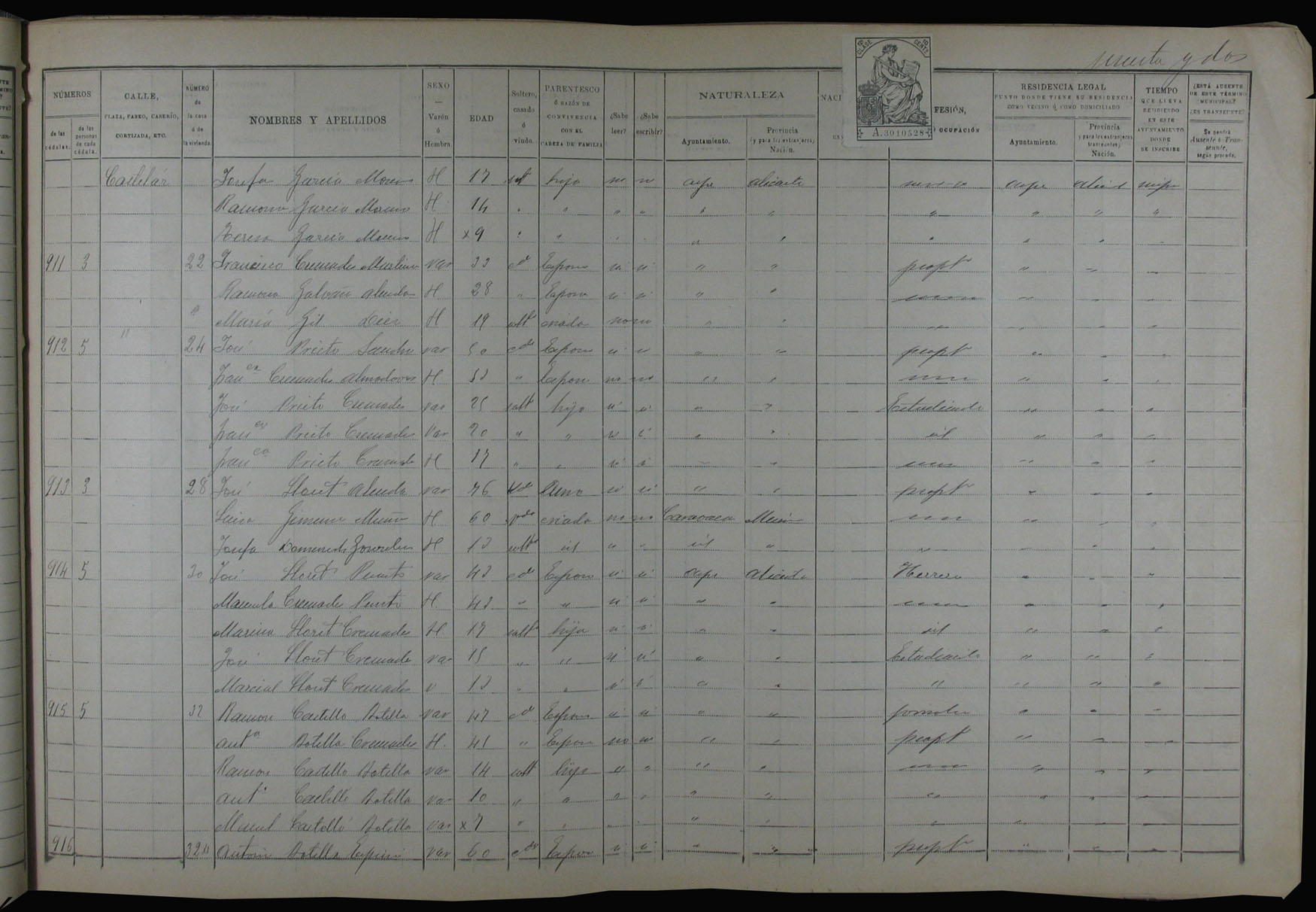 Padrón de habitantes, 1900