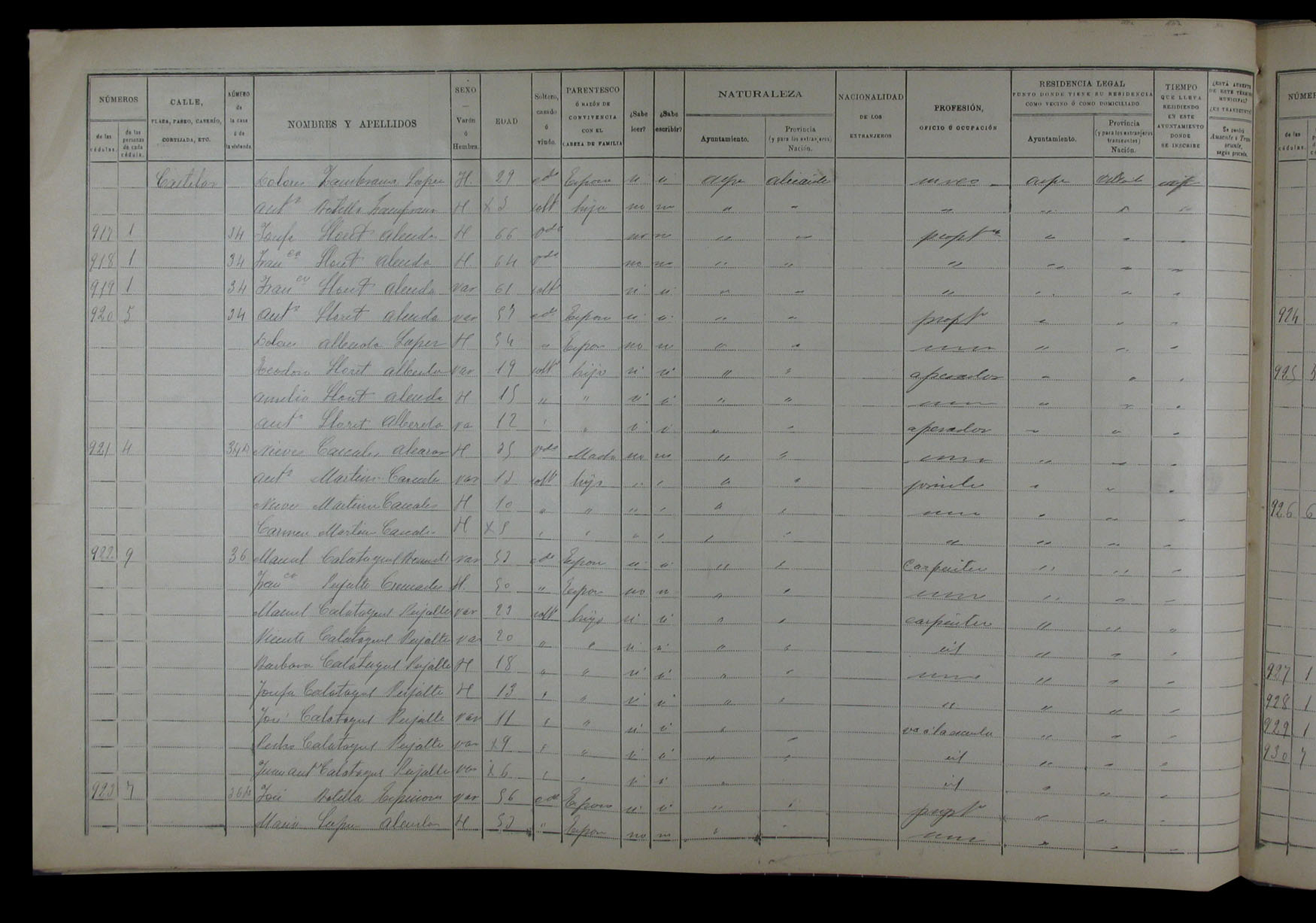 Padrón de habitantes, 1900
