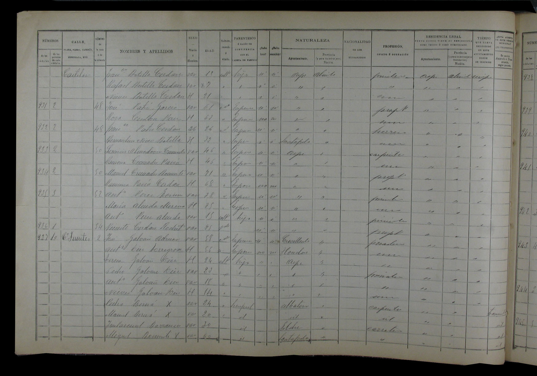 Padrón de habitantes, 1900