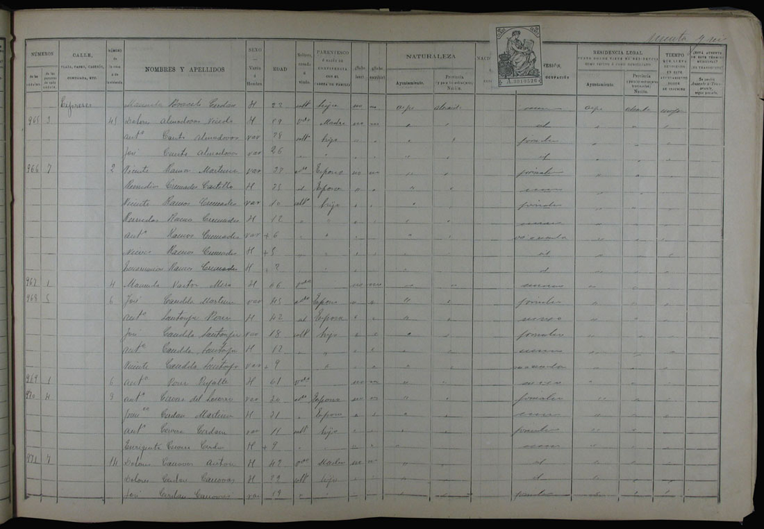 Padrón de habitantes, 1900
