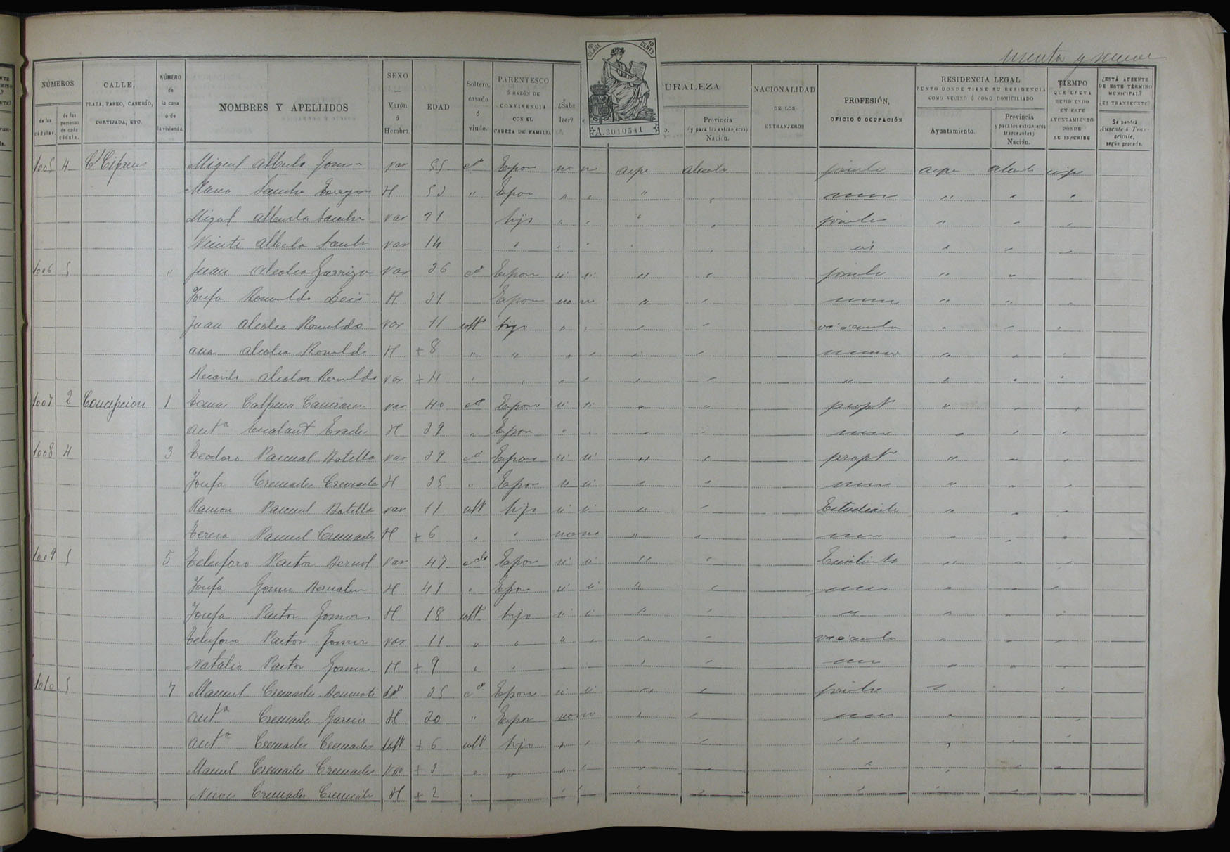 Padrón de habitantes, 1900