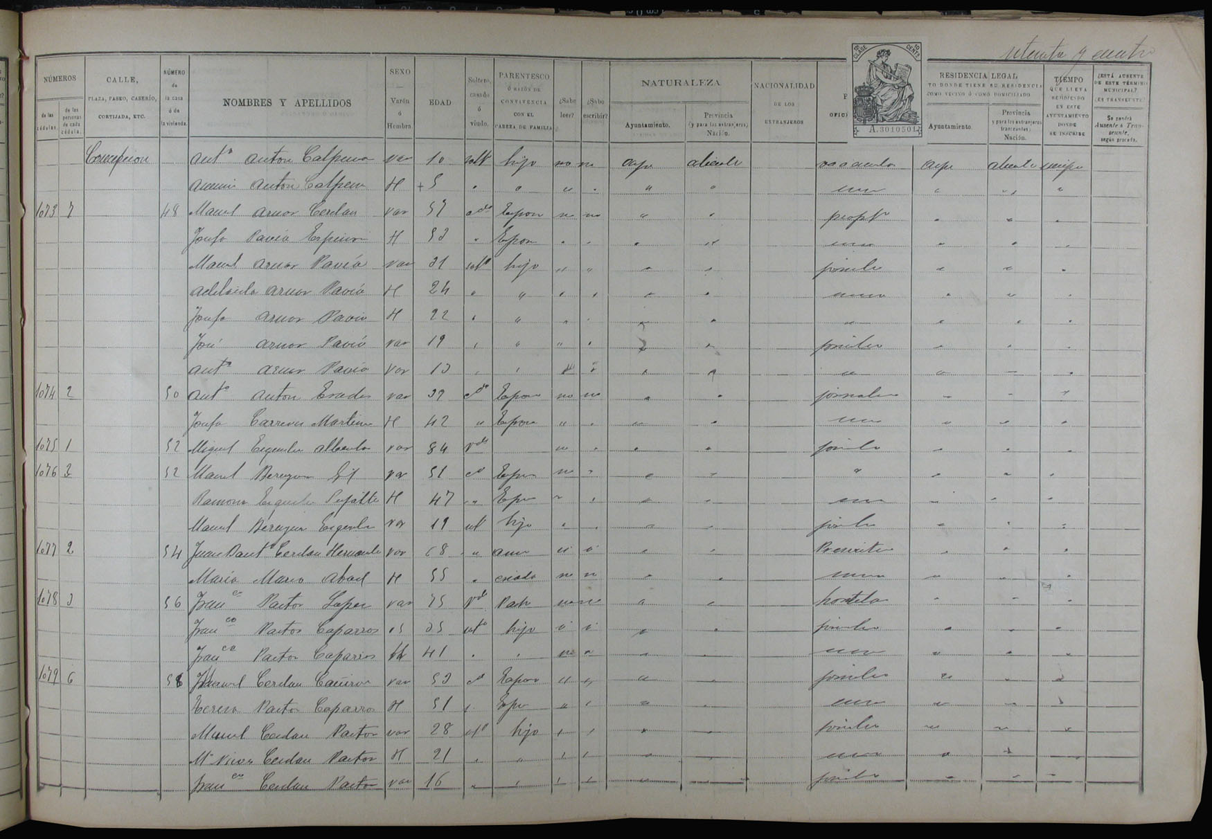 Padrón de habitantes, 1900