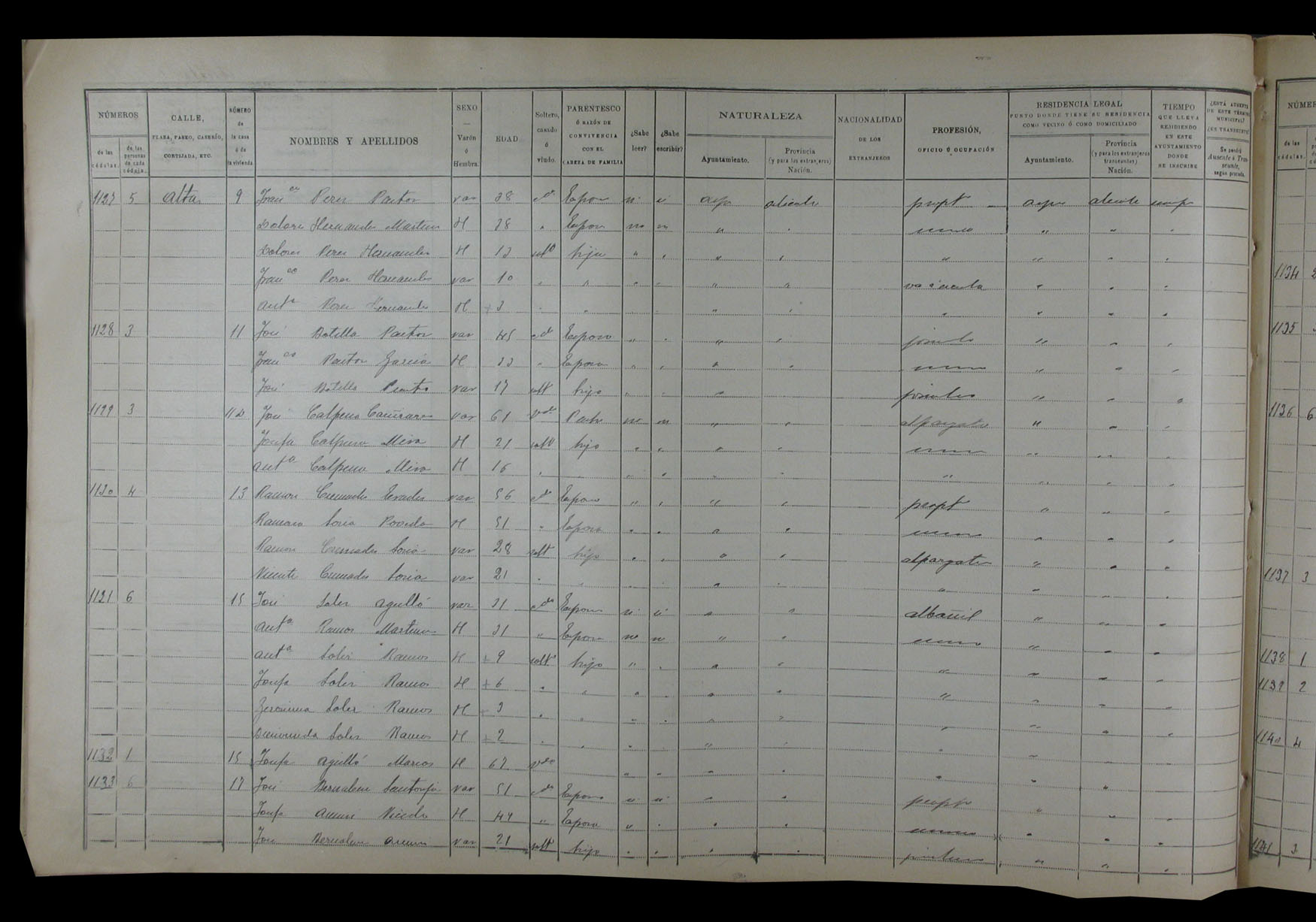 Padrón de habitantes, 1900