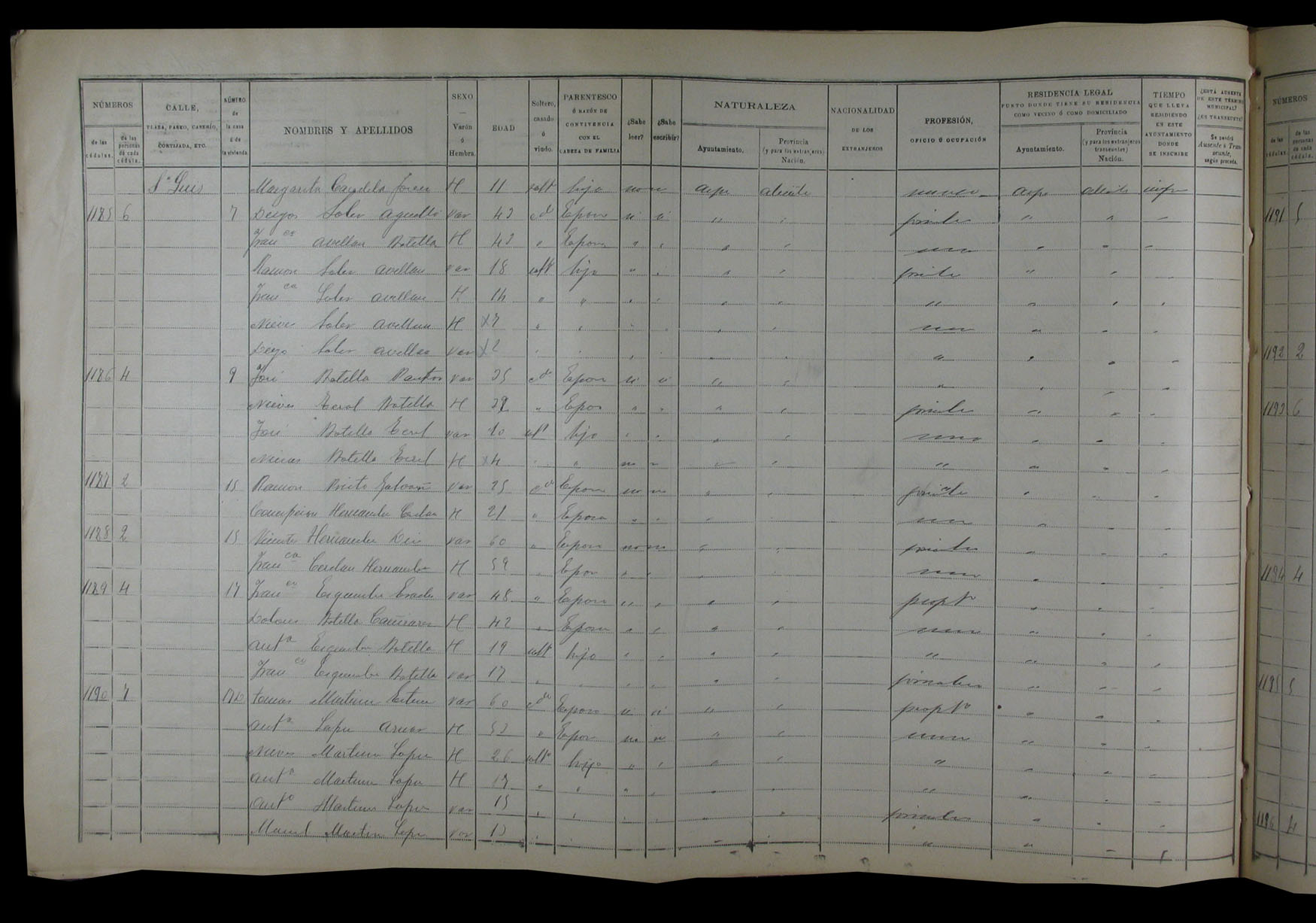 Padrón de habitantes, 1900