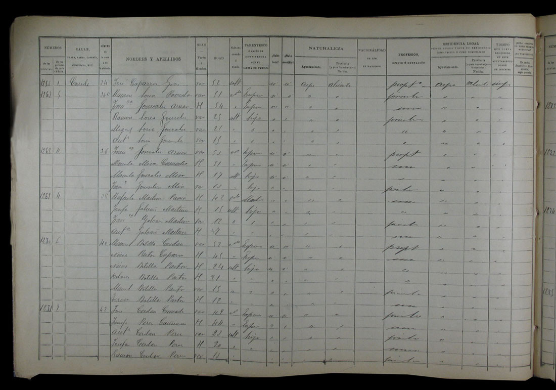 Padrón de habitantes, 1900