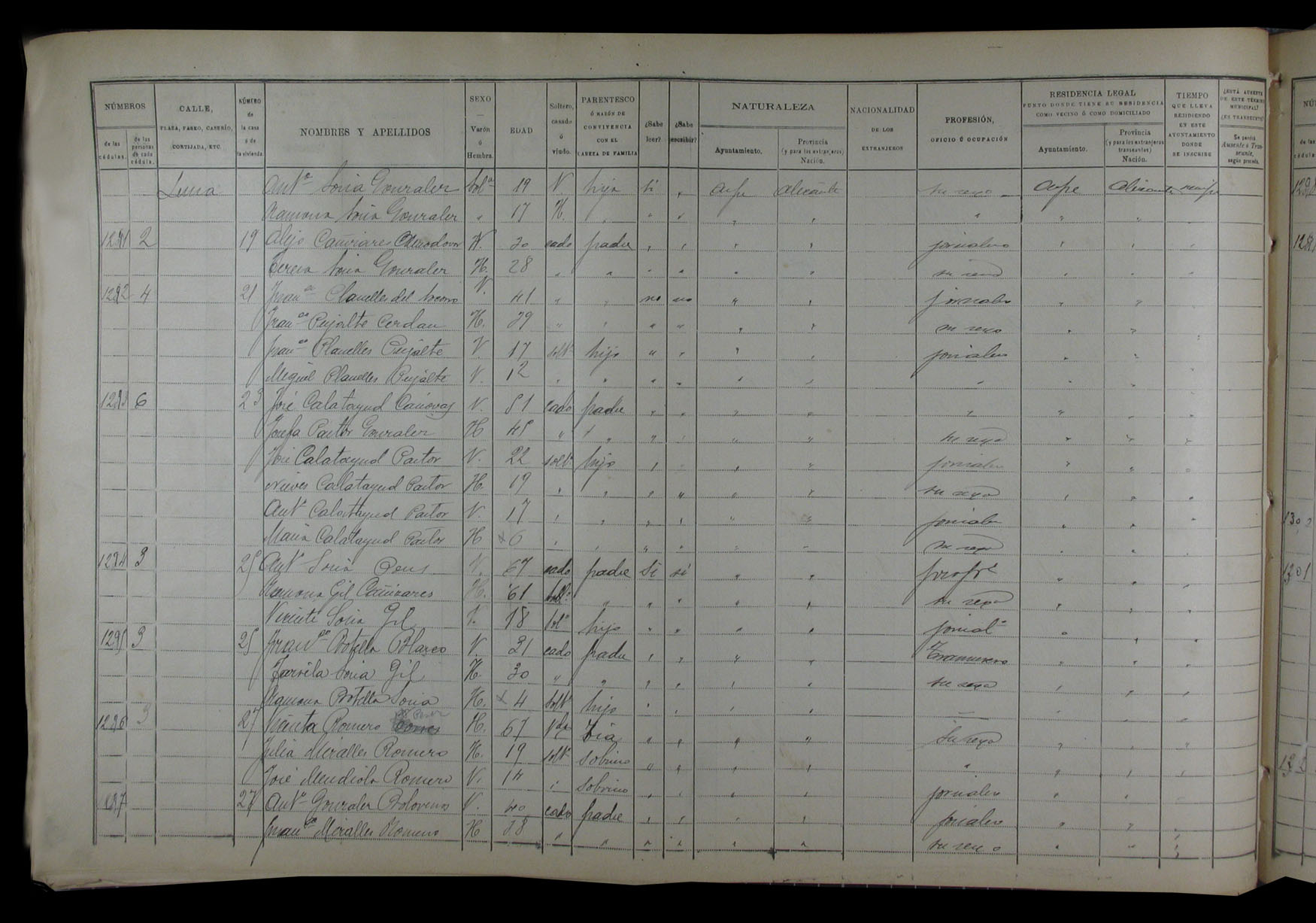 Padrón de habitantes, 1900