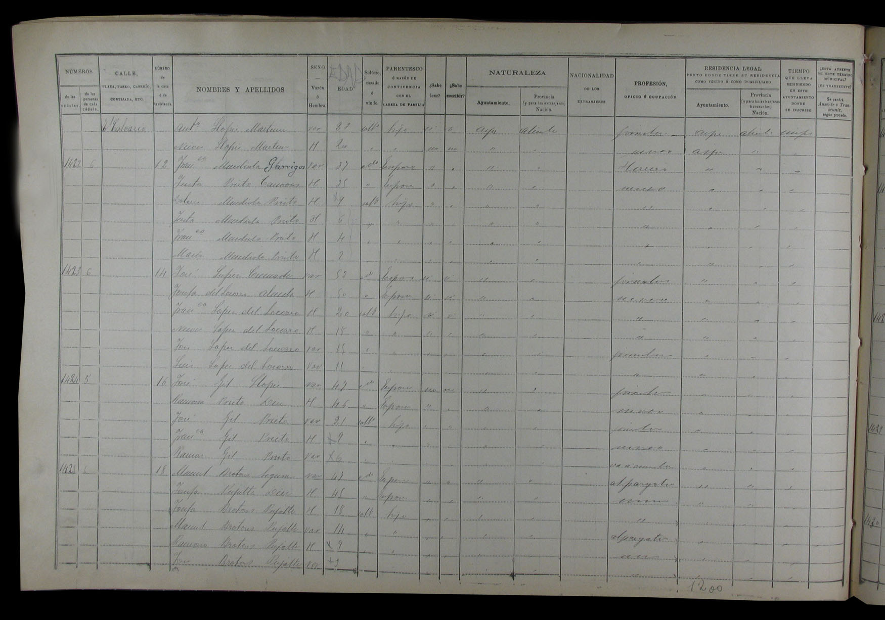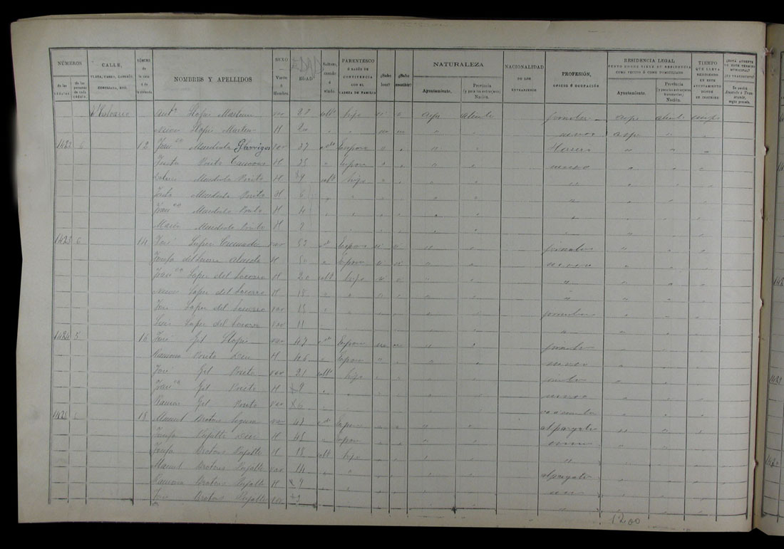 Padrón de habitantes, 1900