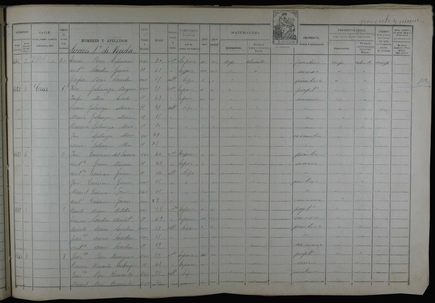 Padrón de habitantes, 1900