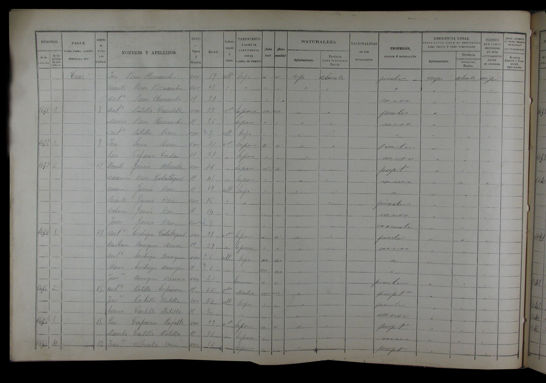 Padrón de habitantes, 1900