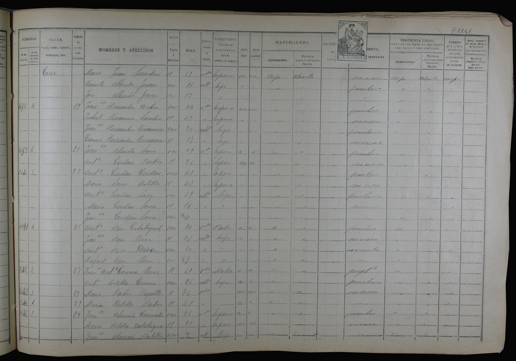 Padrón de habitantes, 1900
