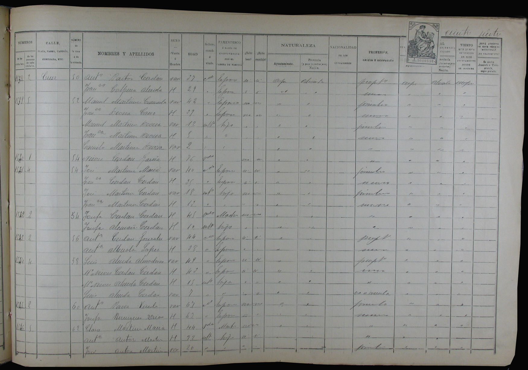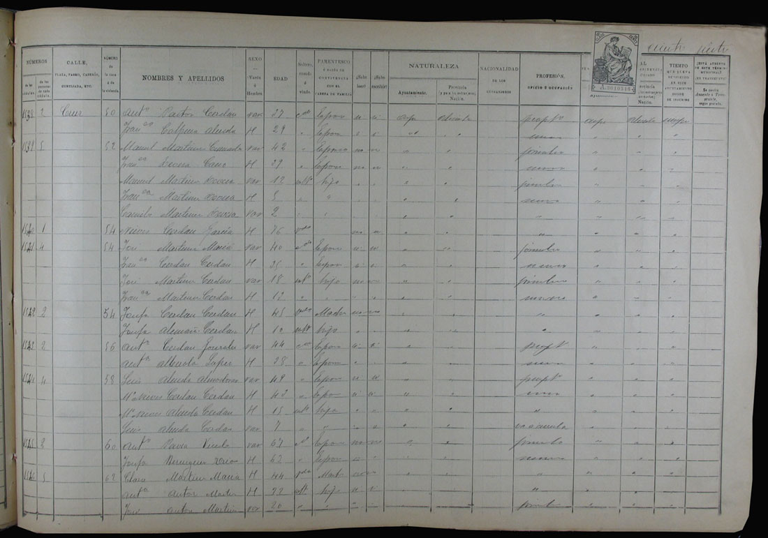 Padrón de habitantes, 1900