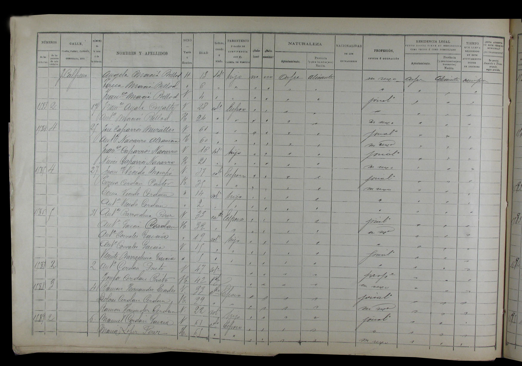 Padrón de habitantes, 1900