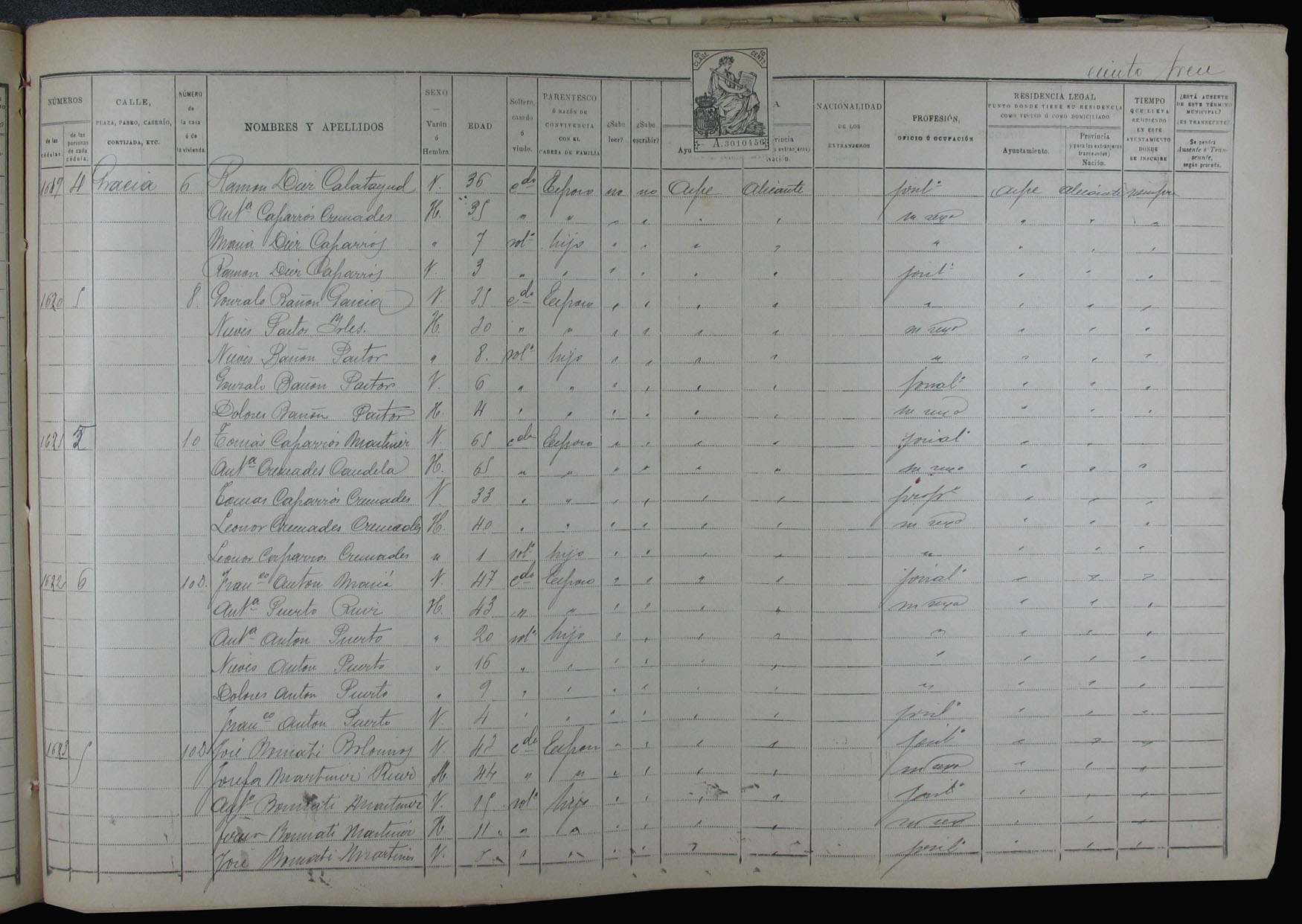 Padrón de habitantes, 1900