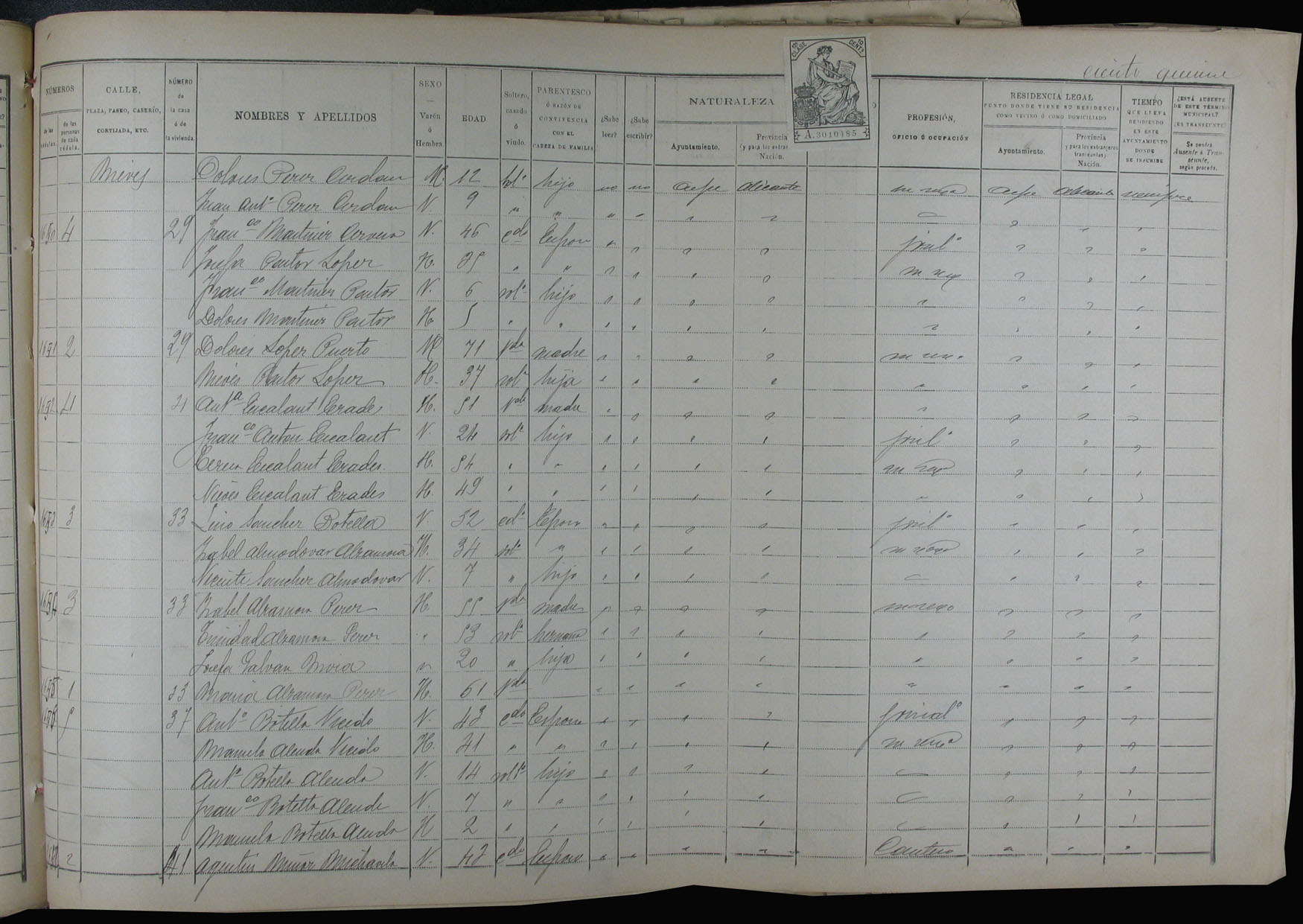 Padrón de habitantes, 1900