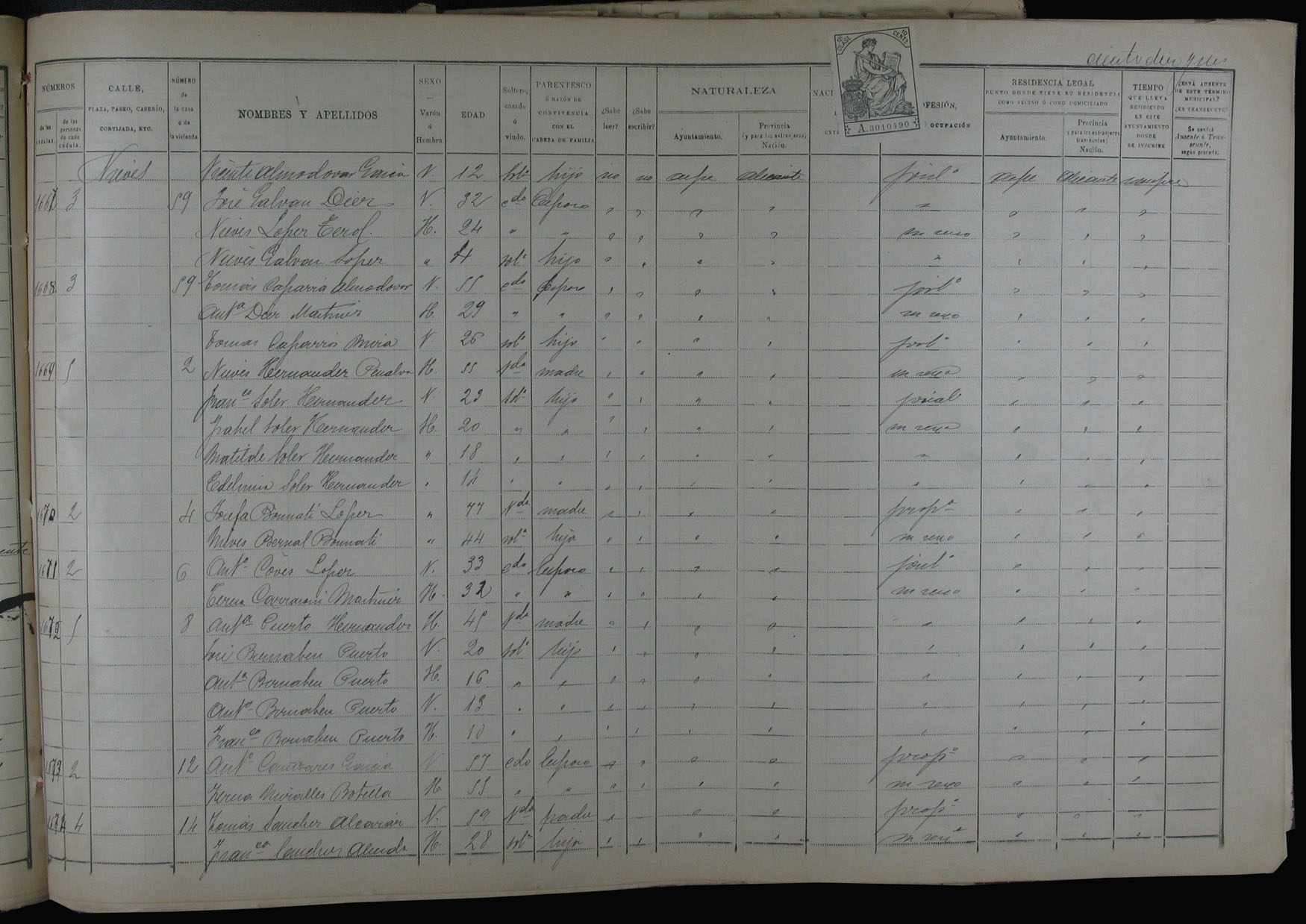 Padrón de habitantes, 1900