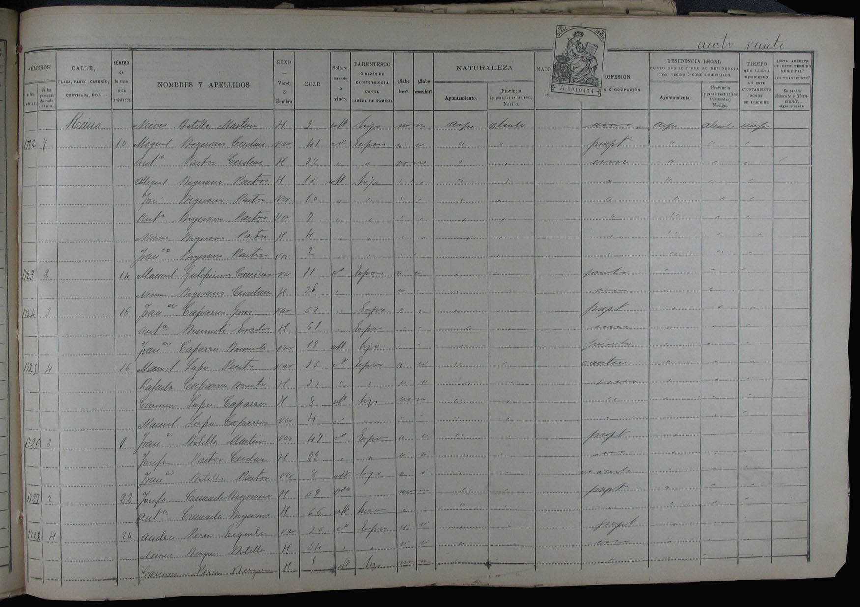 Padrón de habitantes, 1900
