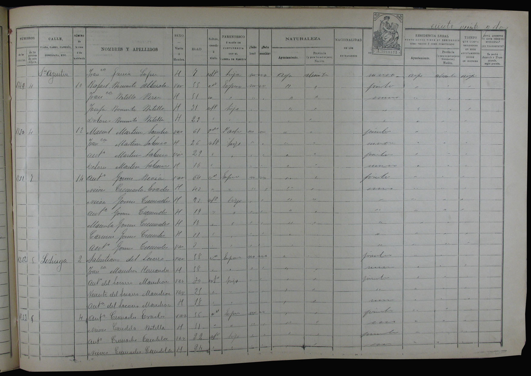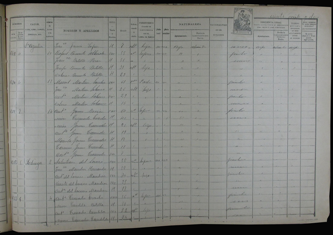Padrón de habitantes, 1900