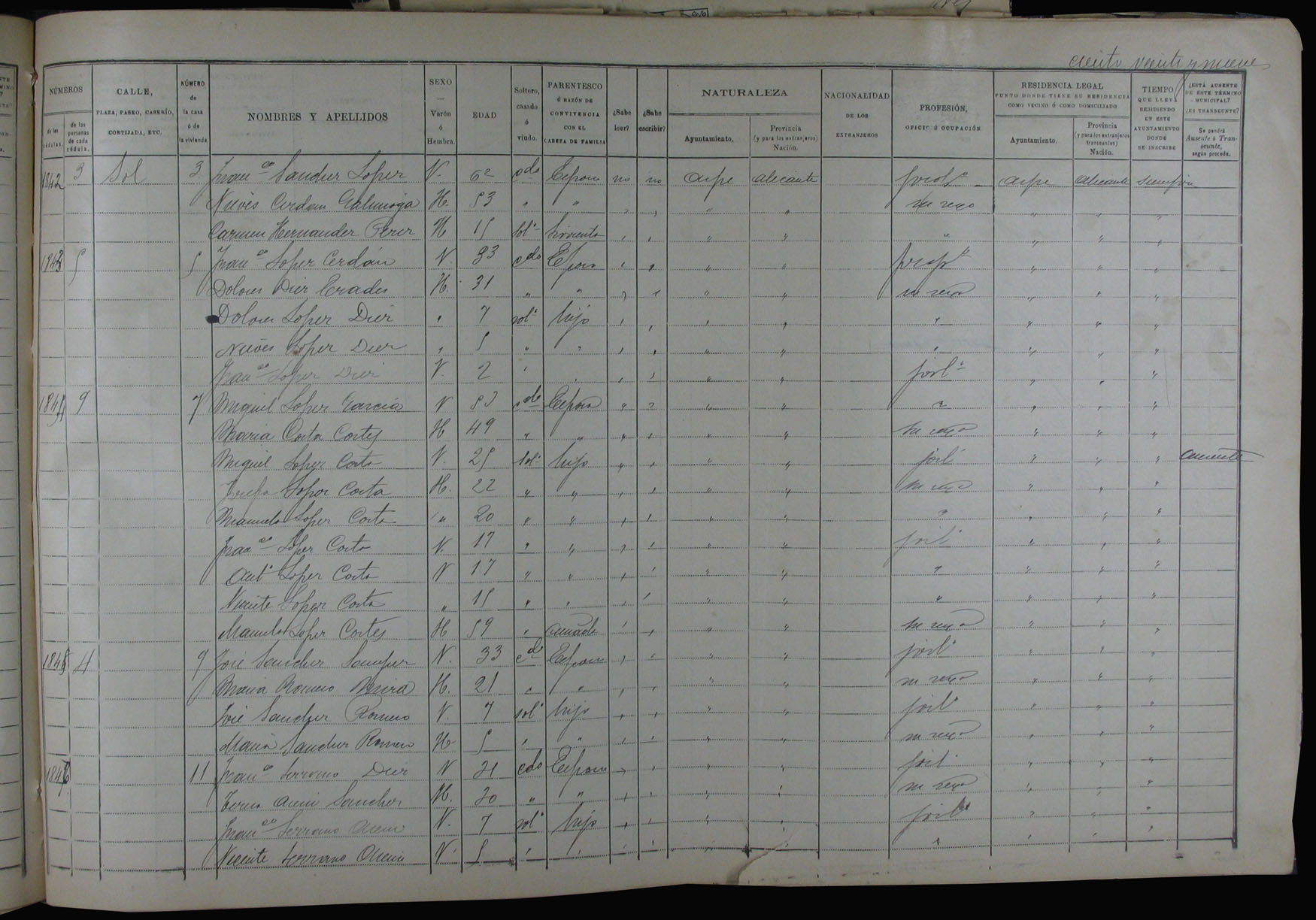 Padrón de habitantes, 1900