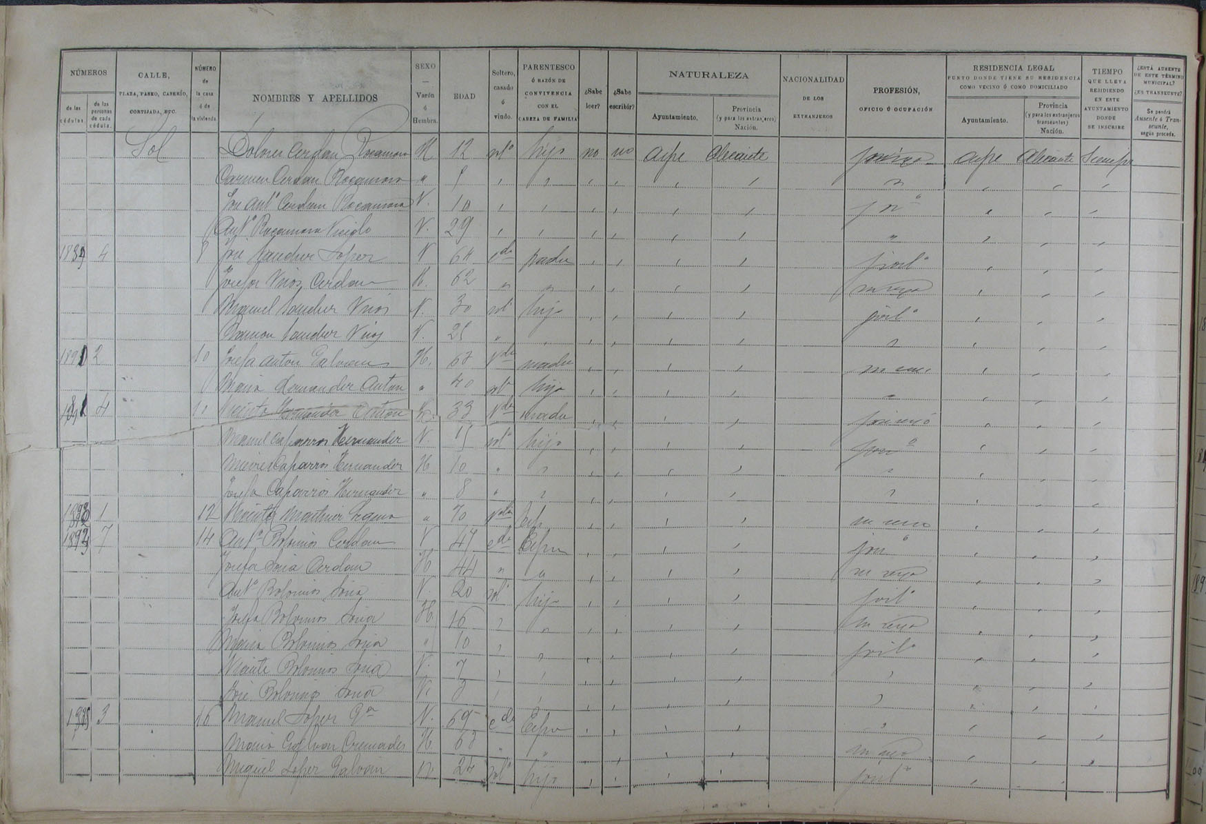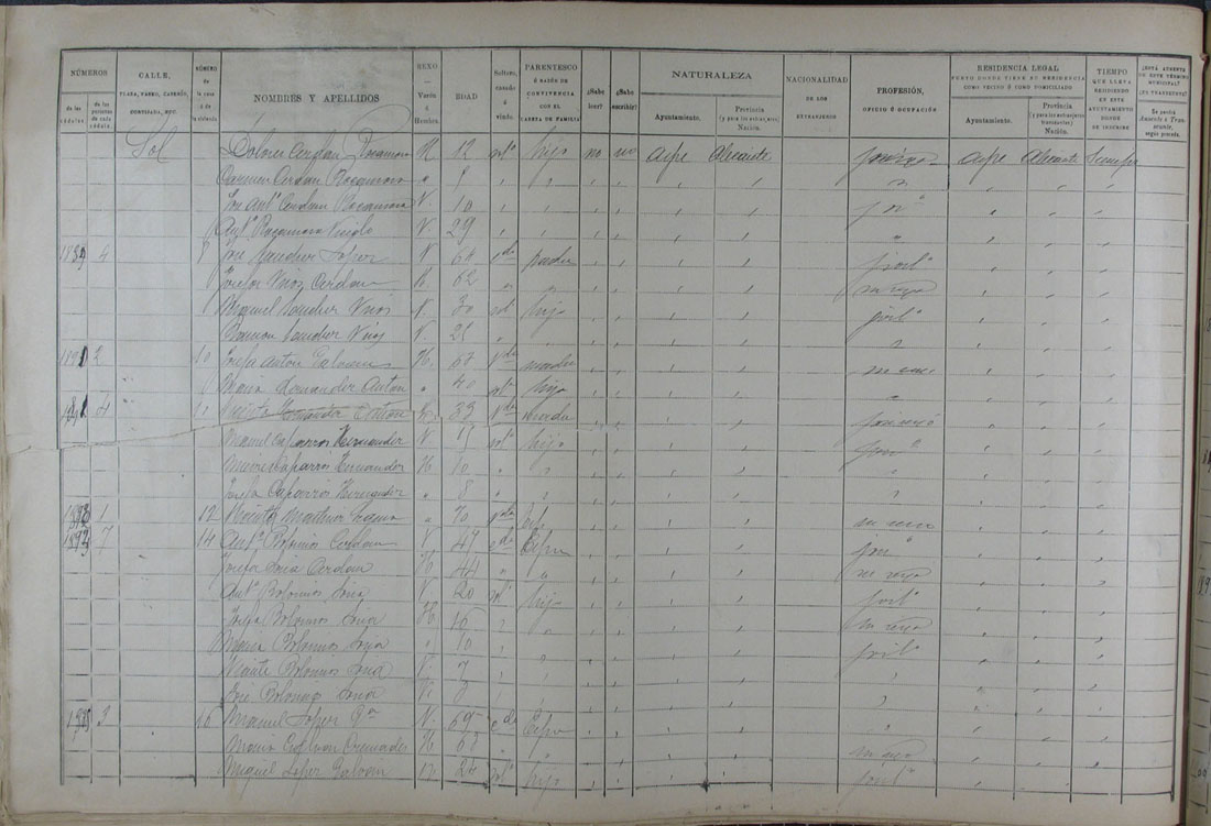 Padrón de habitantes, 1900