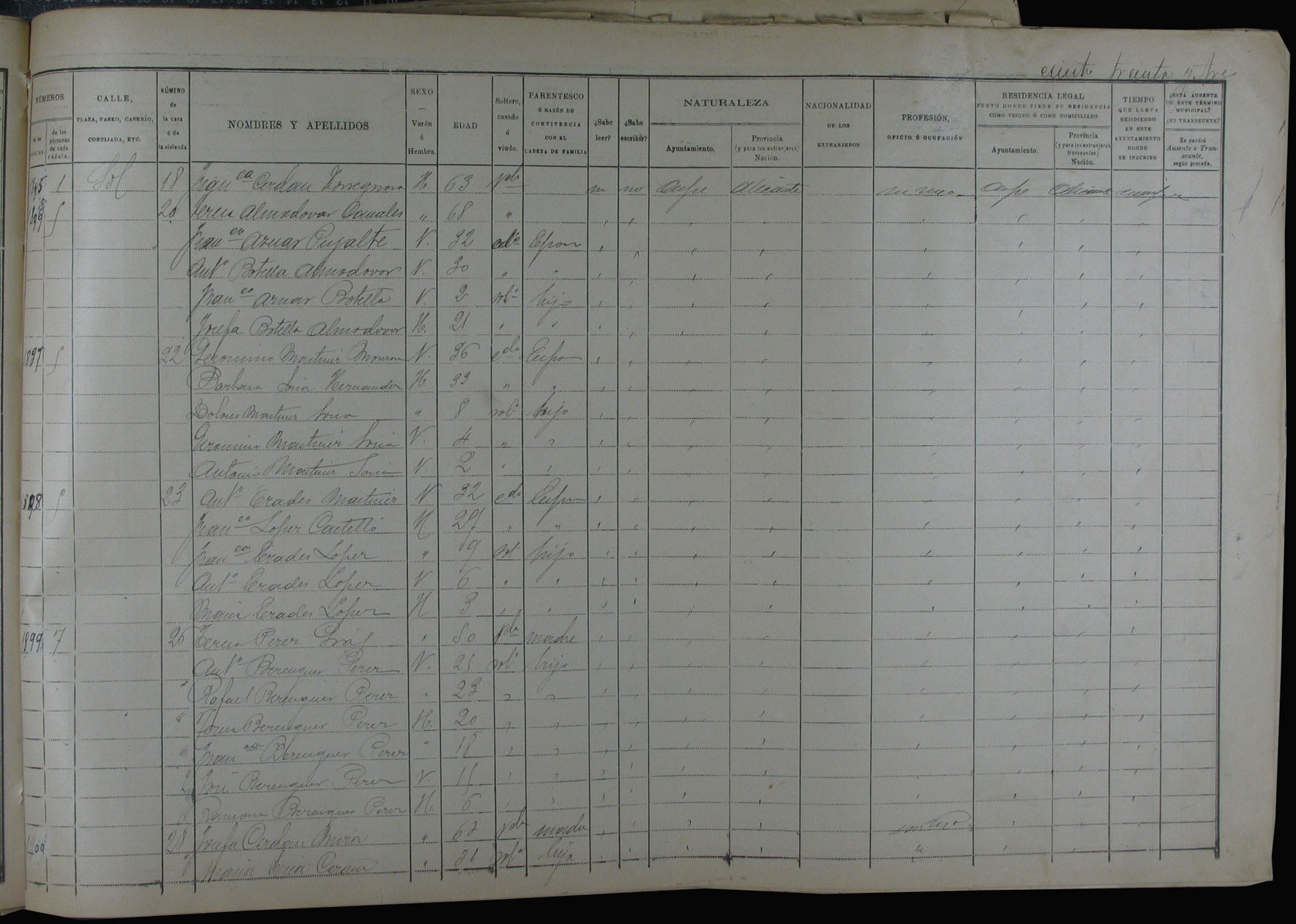 Padrón de habitantes, 1900