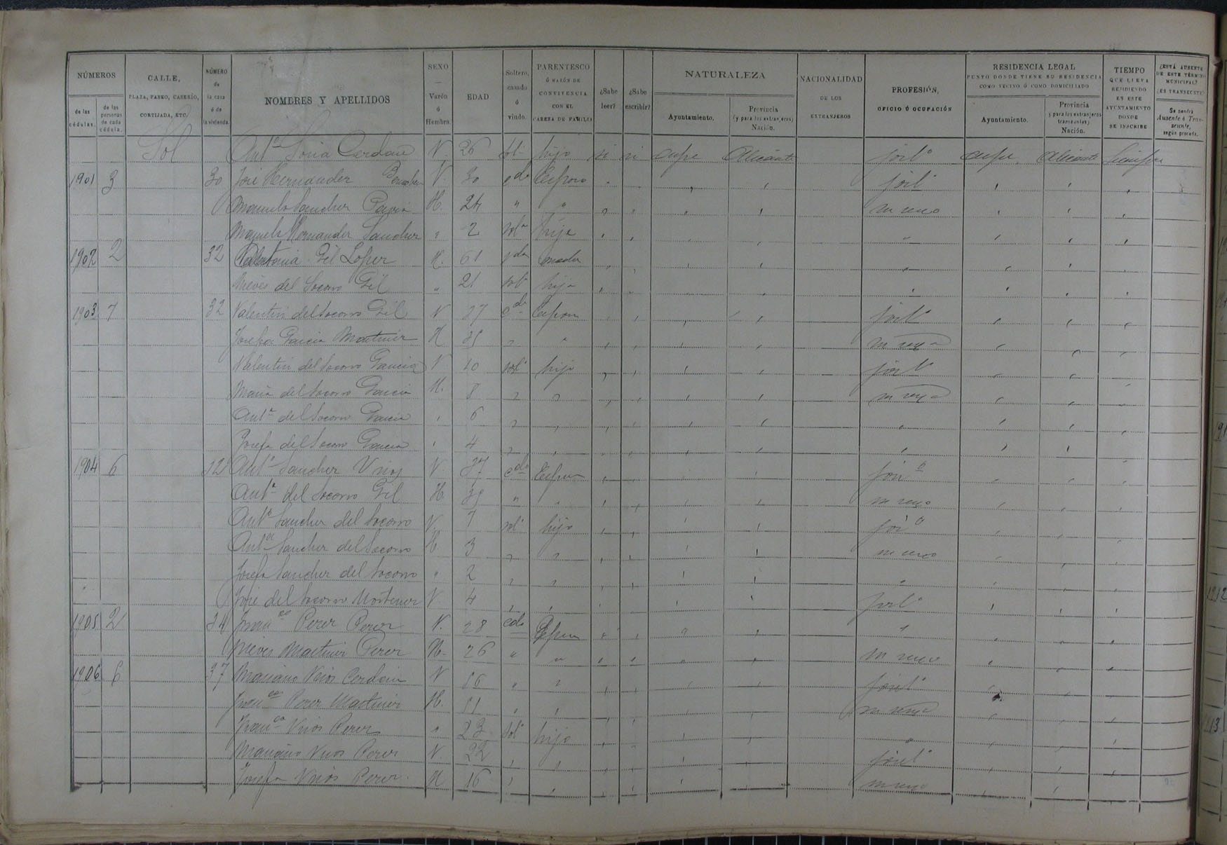 Padrón de habitantes, 1900