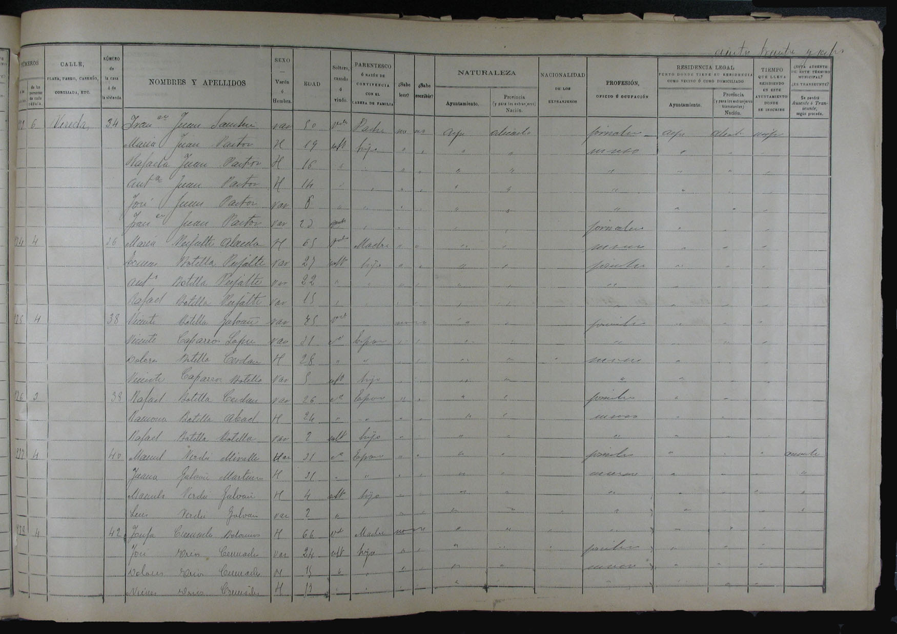 Padrón de habitantes, 1900