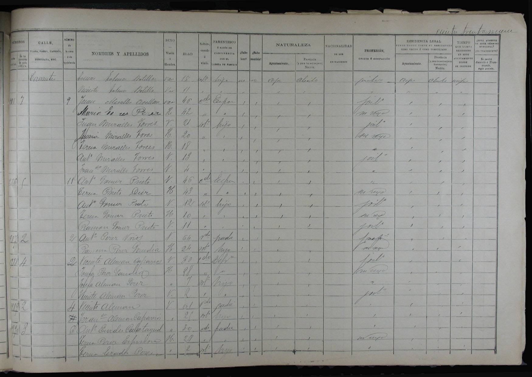Padrón de habitantes, 1900